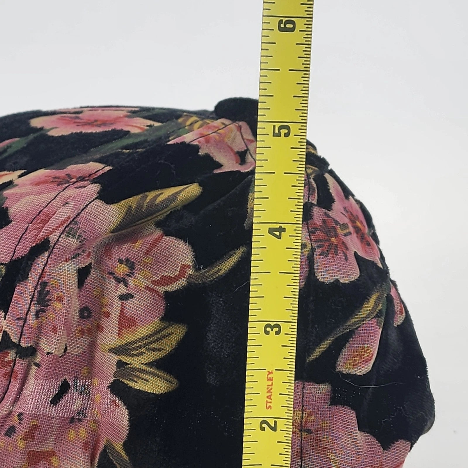 Elevate your accessory game with this stunning David and Young floral baseball cap. Featuring a luxurious black velour base adorned with a vibrant pink floral pattern, this hat perfectly blends a sporty silhouette with feminine, "dark romance" vibes. The velvet-like texture adds depth and a premium feel, while the polyester-viscose blend ensures it stays soft and comfortable for all-day wear. Whether you're hiding a bad hair day or completing a Y2K-inspired outfit, this stylish cap is a standout piece.