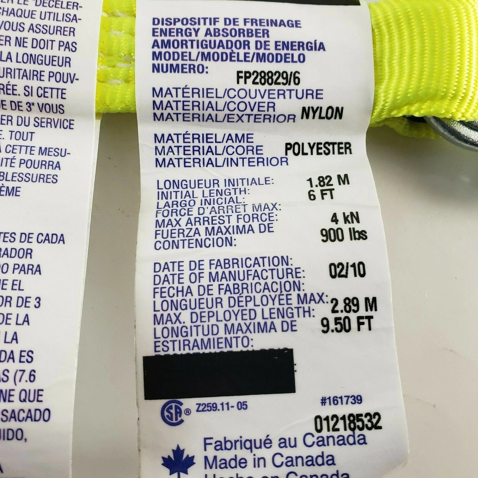 Decelerator Energy Absorbing Lanyard North Safety FP28829/6 HV Yellow Certified