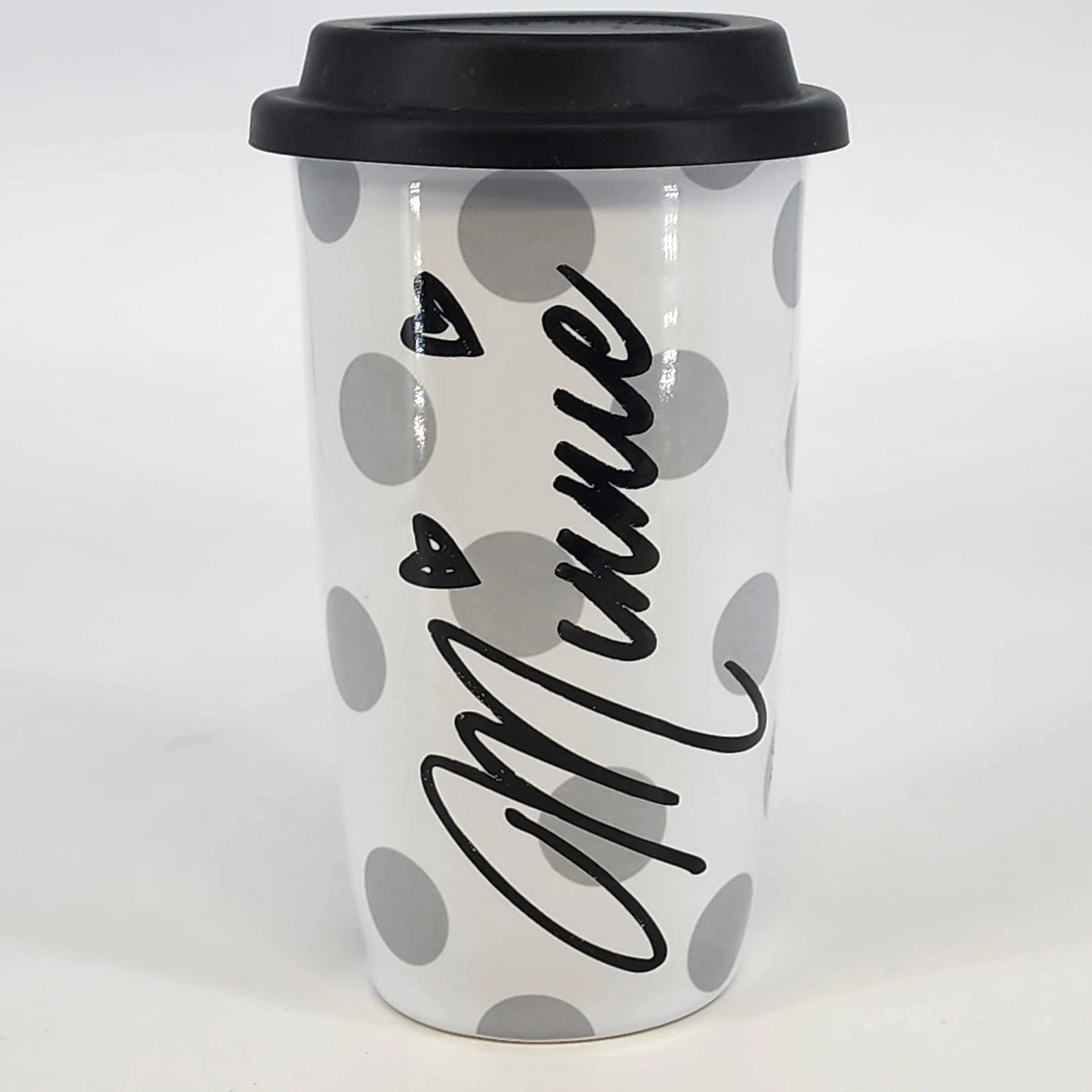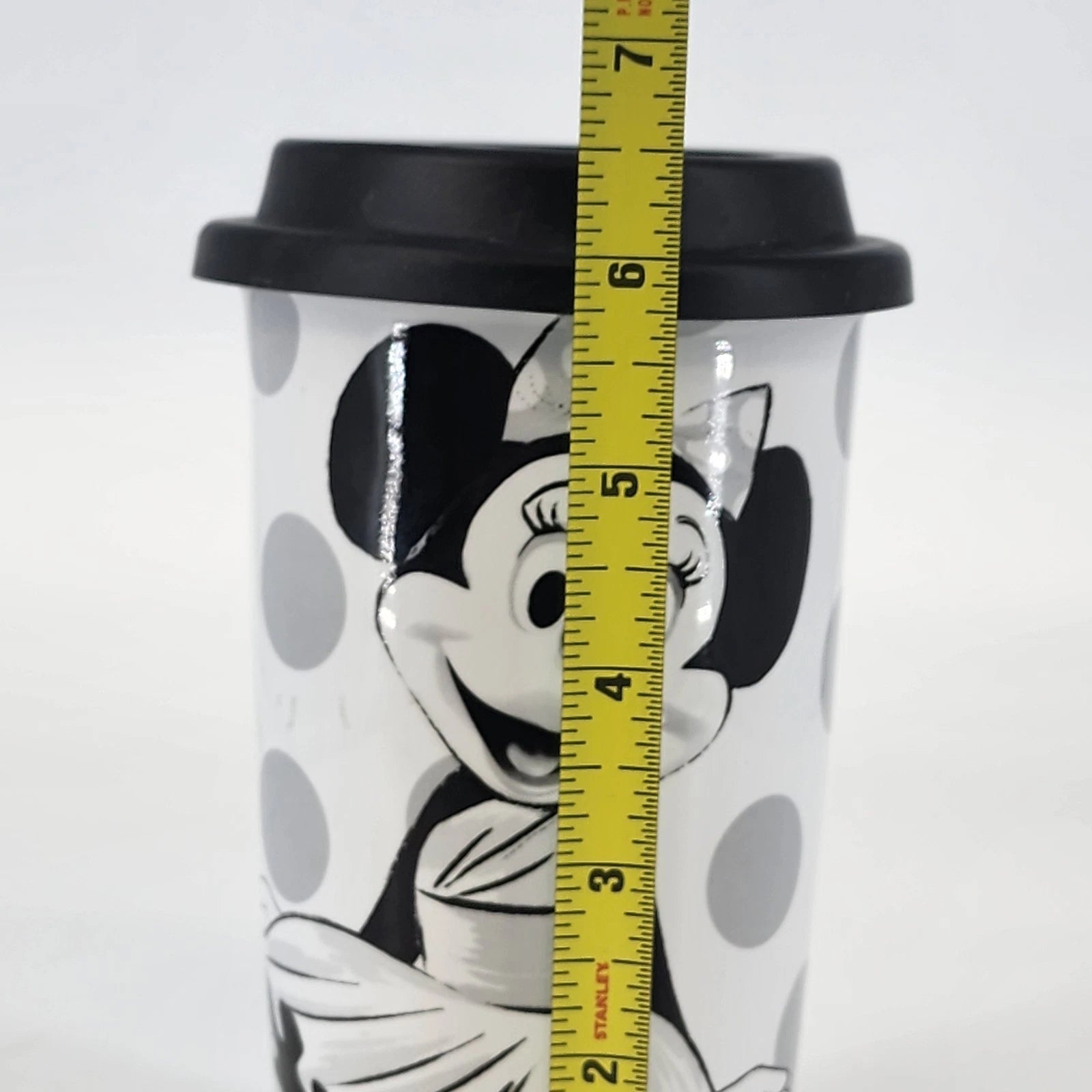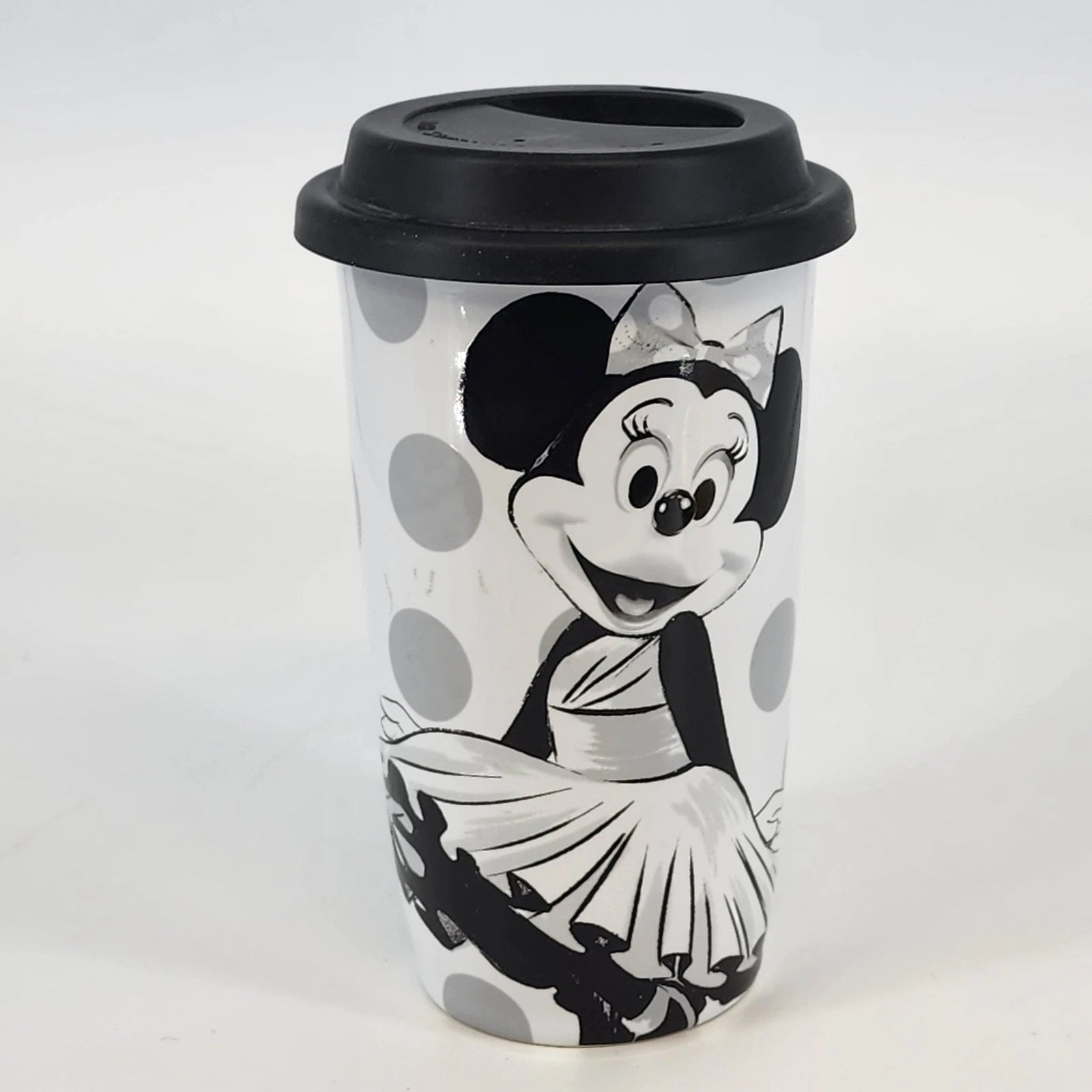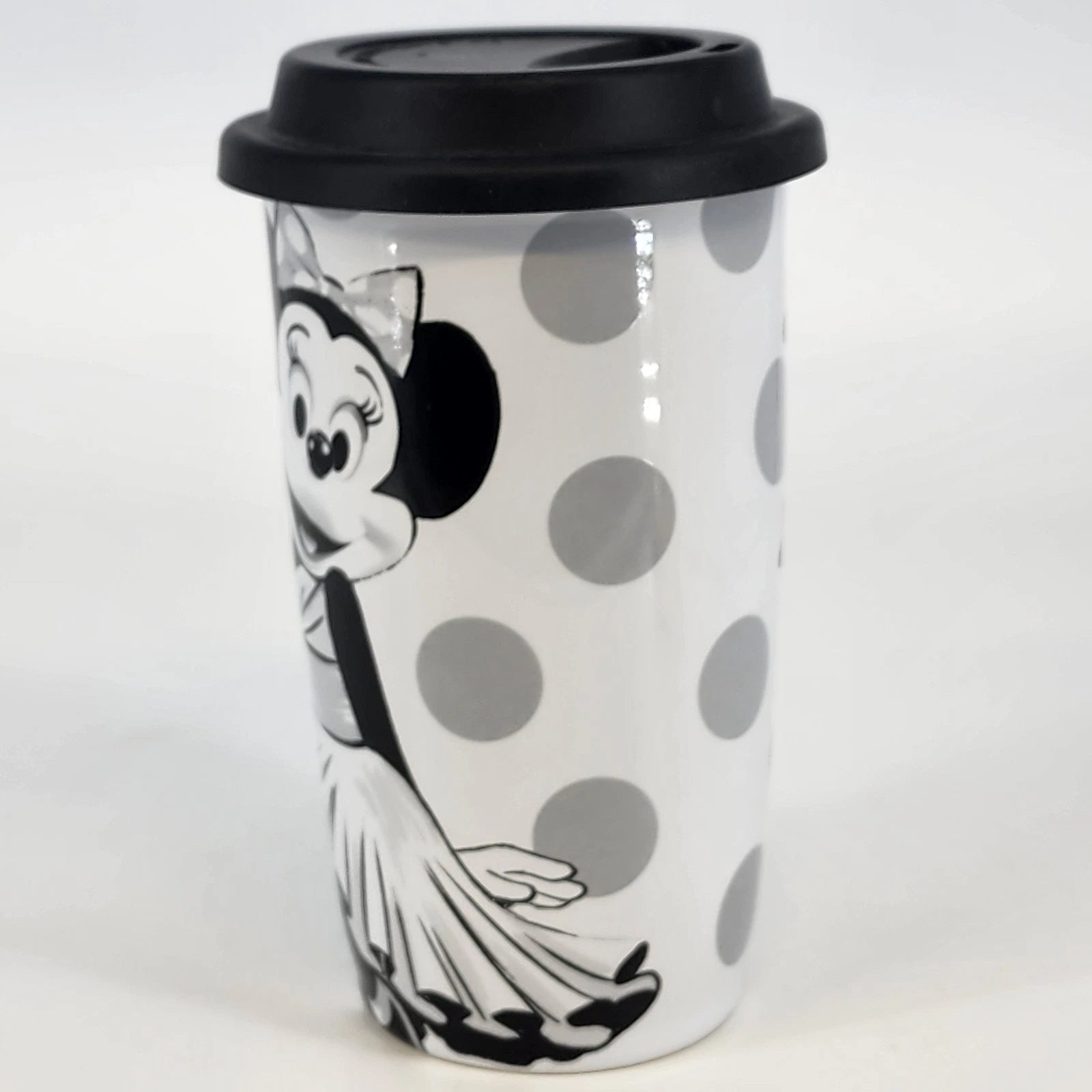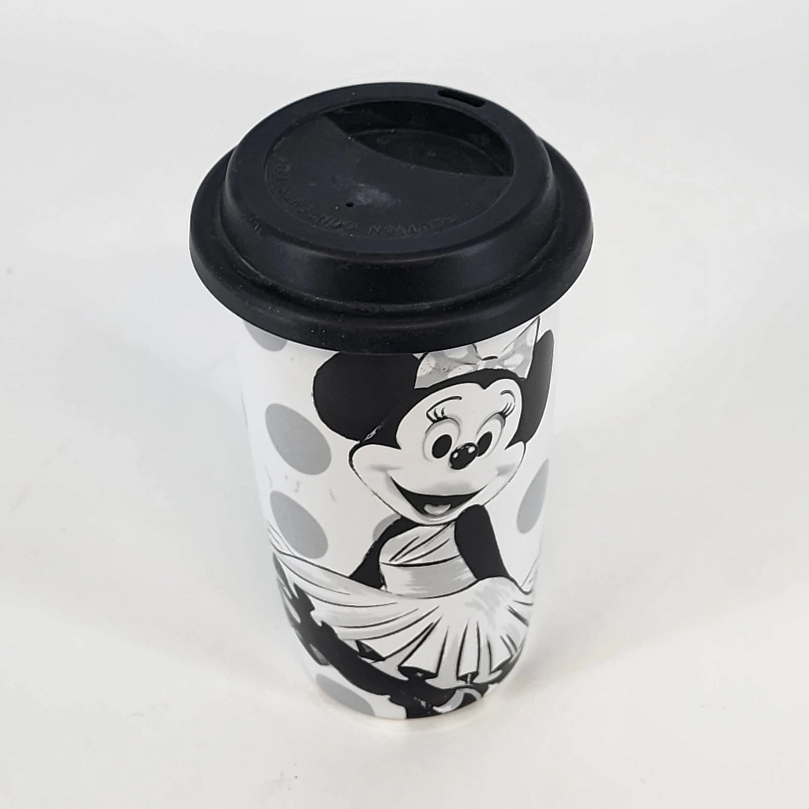 Disney Minnie Mouse Travel Tumbler Ceramic 16 oz Black & White with Silicone Lid