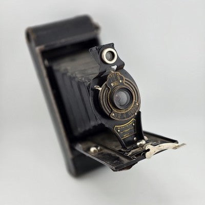 The product is an Eastman Kodak No 2-A Folding Autographic Brownie camera, manufactured in 1913 in the United States. This vintage camera features fixed focus and a black color scheme, making it a unique and collectible piece for film photography enthusiasts. The camera is part of the 2-A Autographic Brownie series and is designed as a folding unit for convenience and portability. With its antique charm and historical significance, this camera would be a valuable addition to any camera collection or for those interested in repairing or restoring vintage camera models.