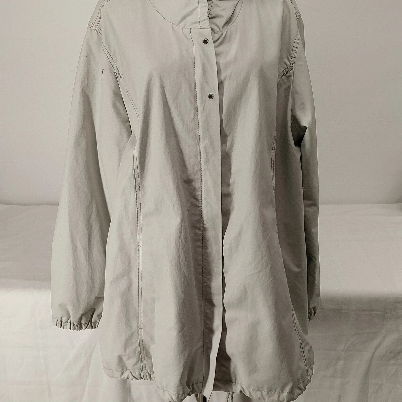 Eddie Bauer Women’s Jacket 2X Beige Hooded Windbreaker Lightweight Lined Vintage