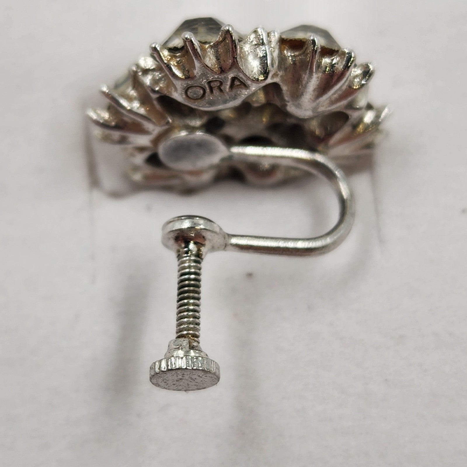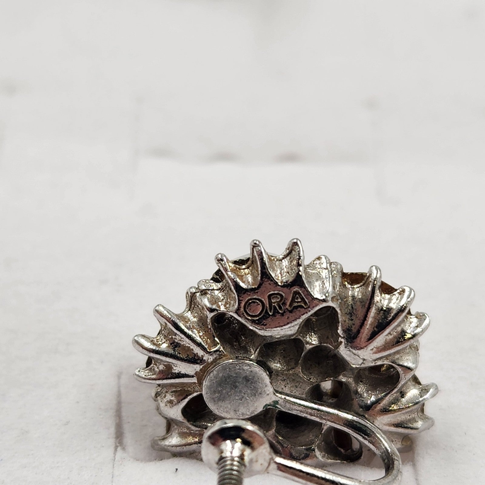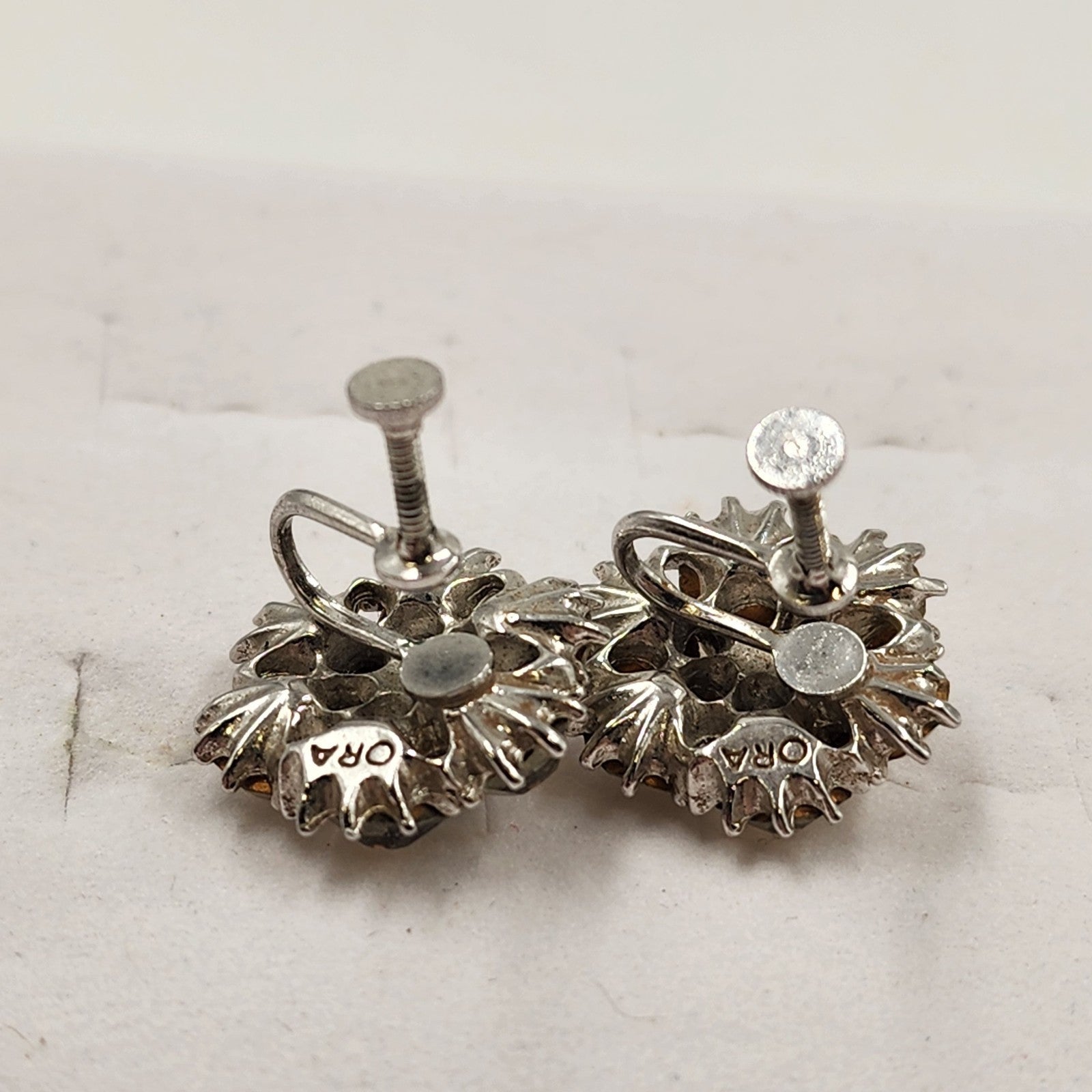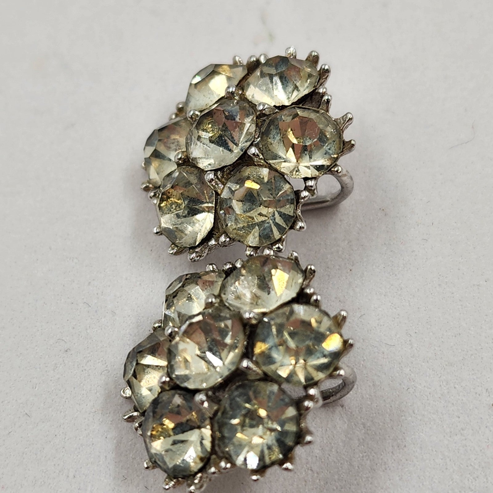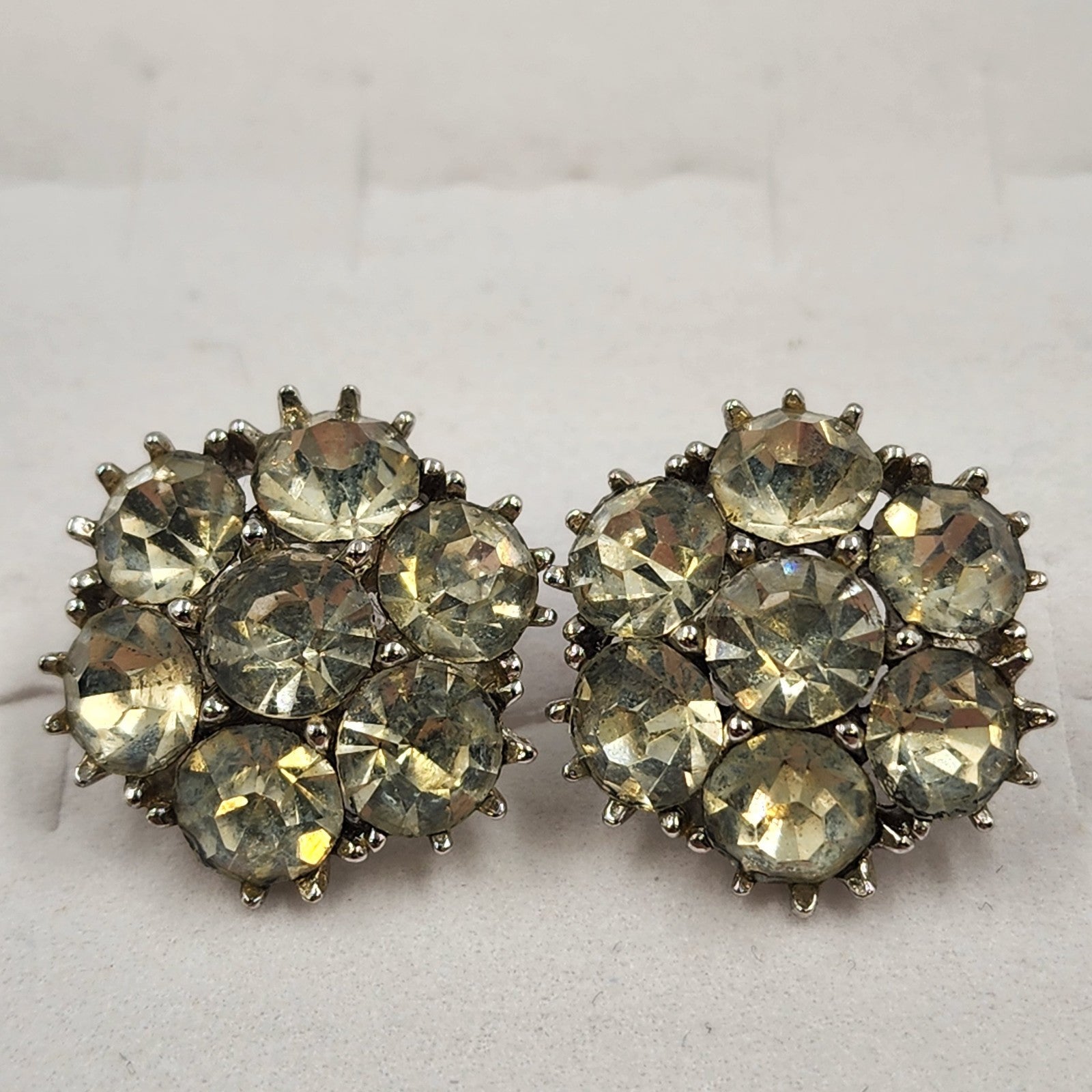 Elegant Silver Tone Clear Rhinestone Button Earrings Vintage Screw Back 0.75”