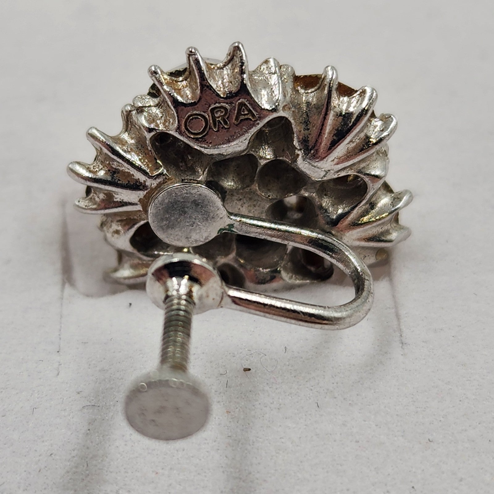These elegant vintage button earrings feature silver tone metal with clear rhinestones in a round shape. They have a screw back closure and measure 0.75 inches in diameter. Perfect for Mother's Day, anniversary, or birthday gifts. The classic design and white/colorless stones make them a timeless accessory.