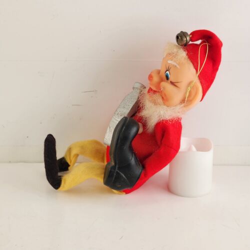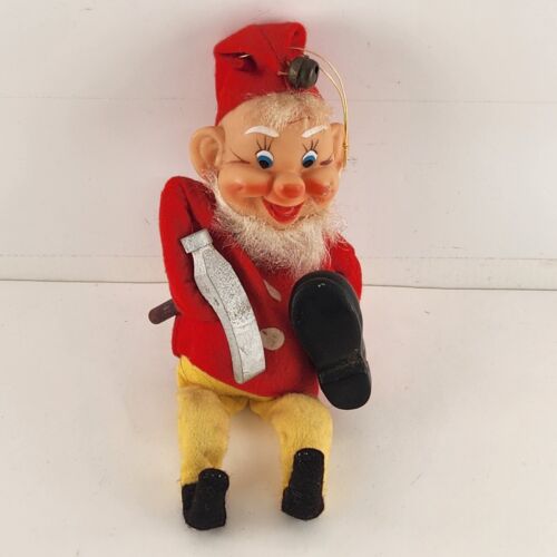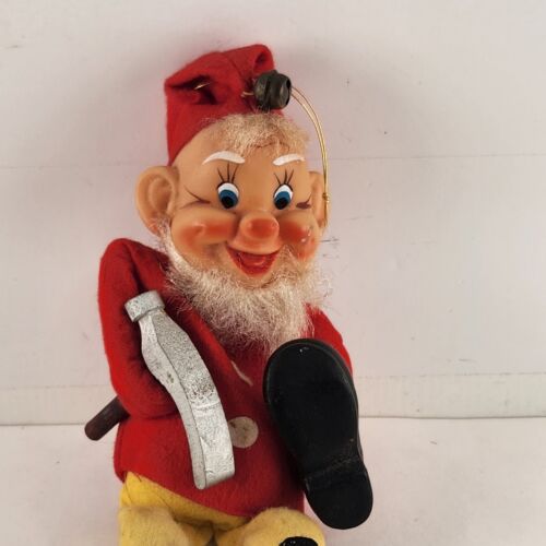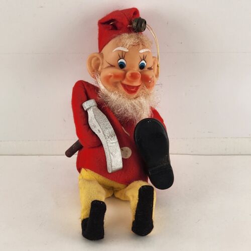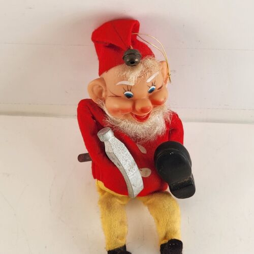 Elf Cobbler Shoe Maker Gnome Vintage Christmas Ornament Japan 1970 Sitting