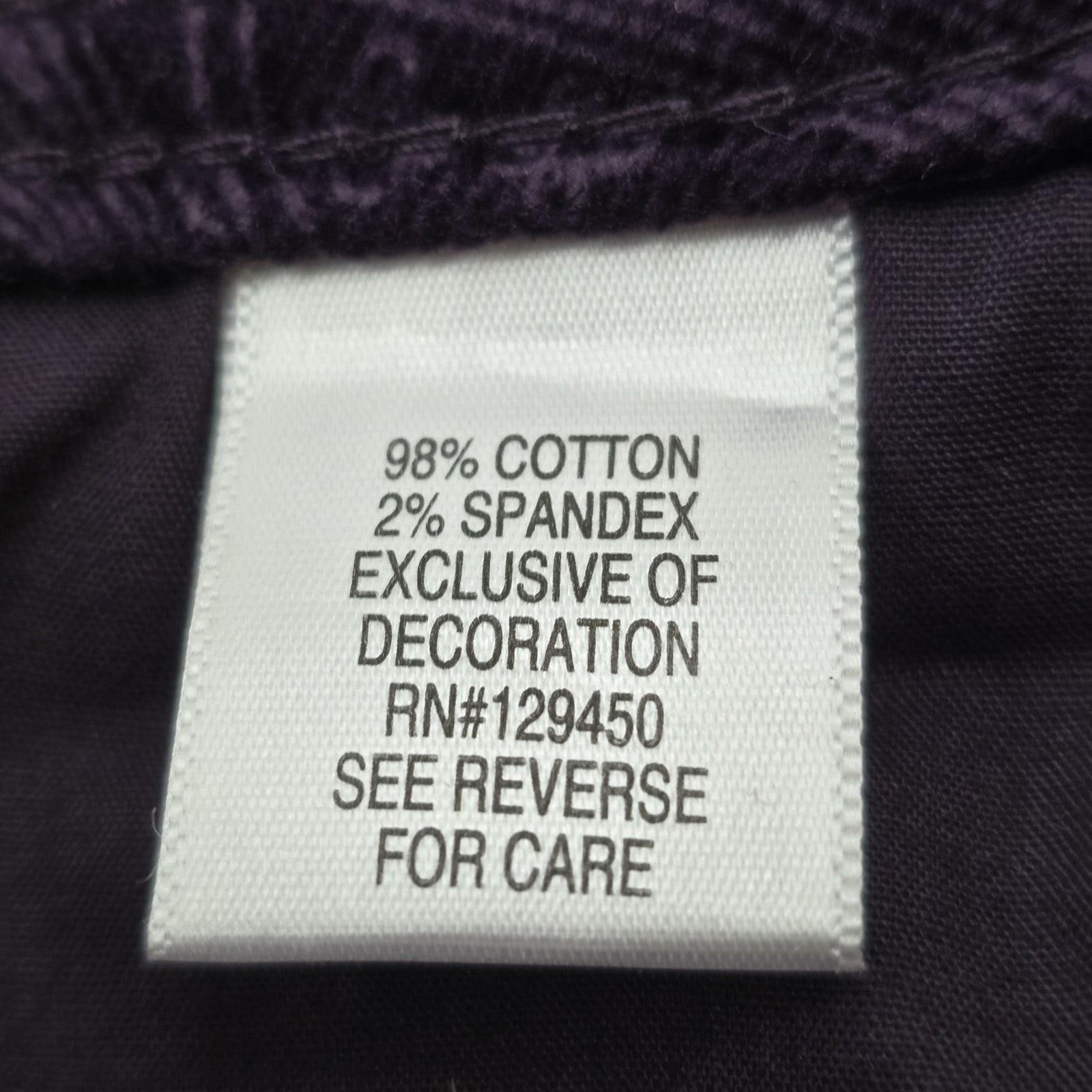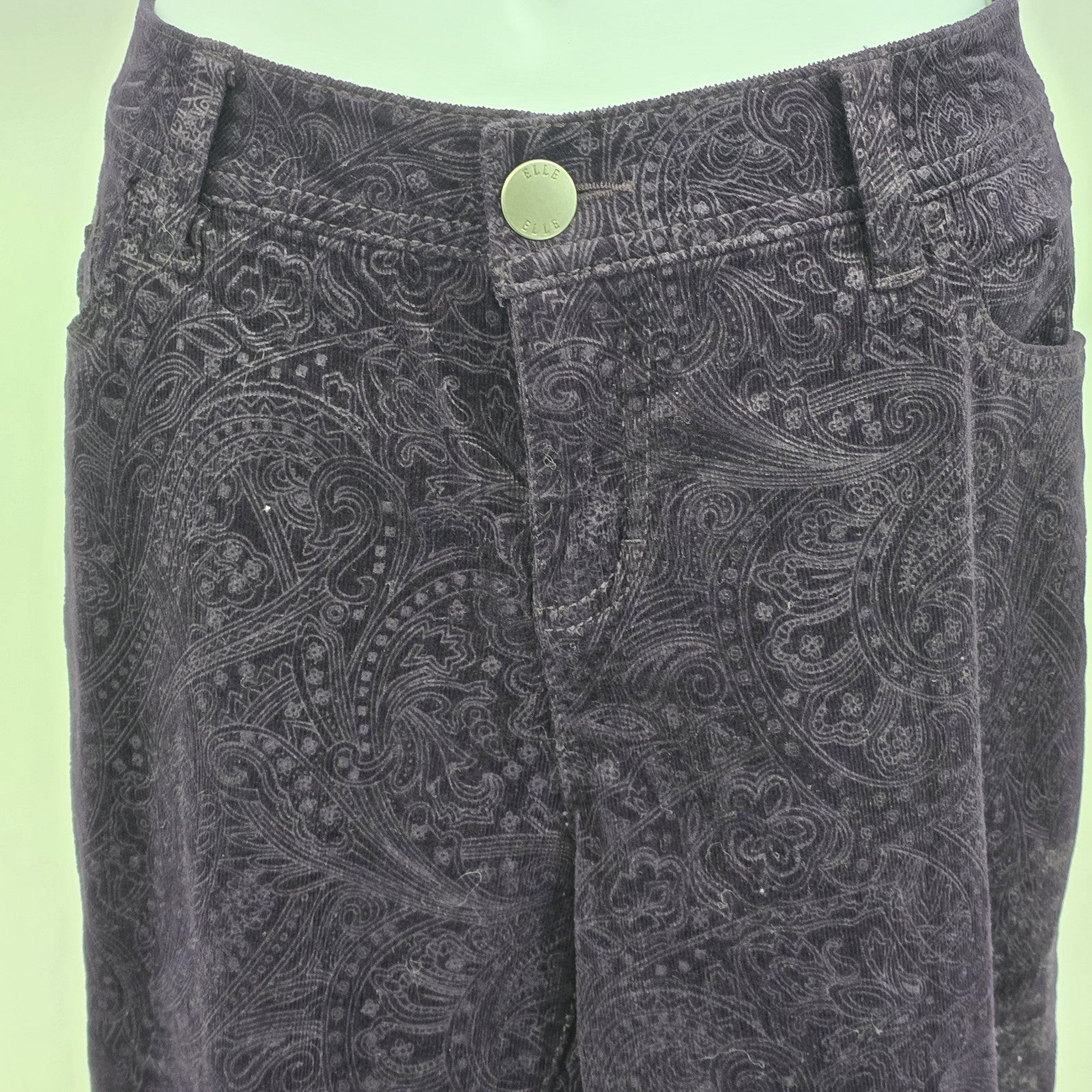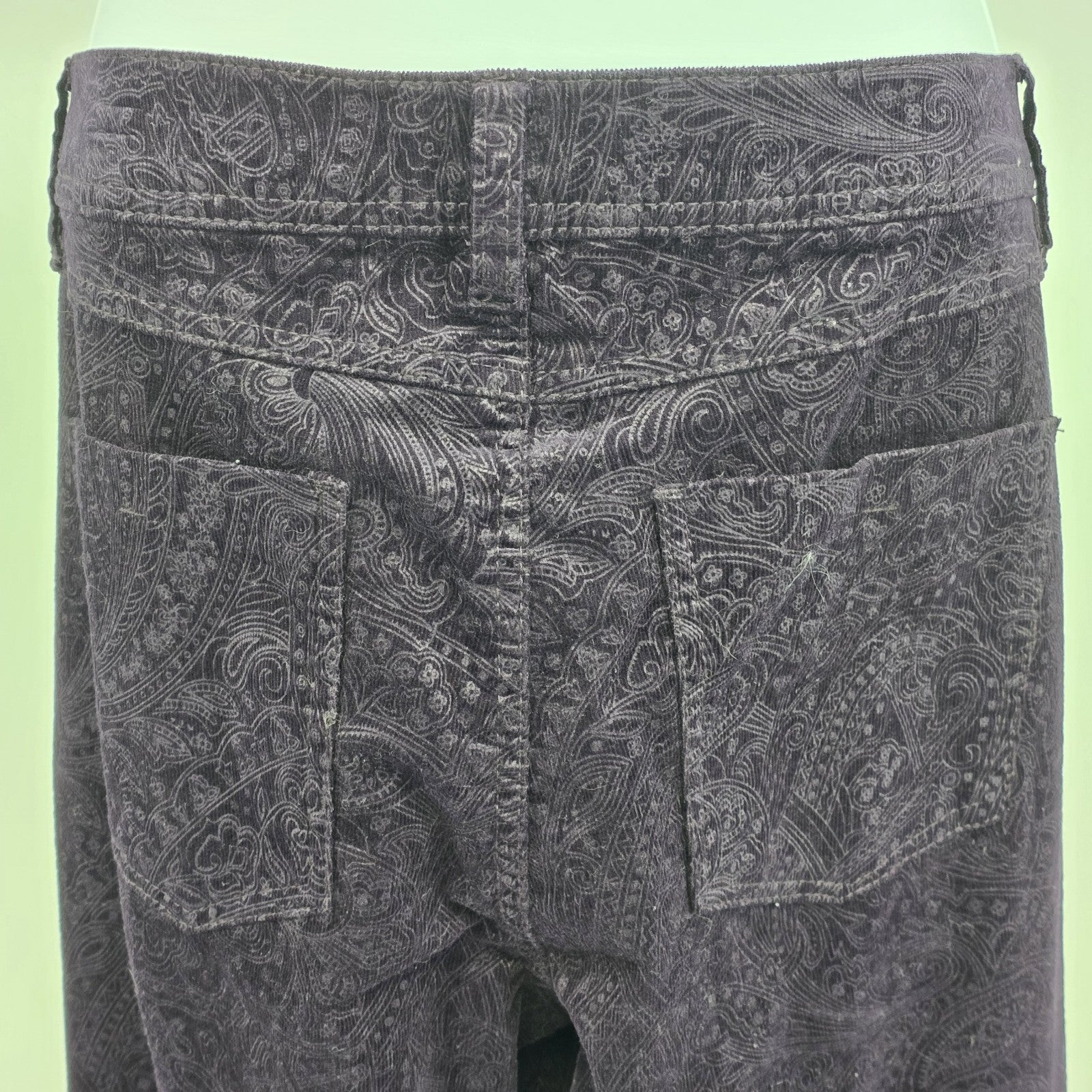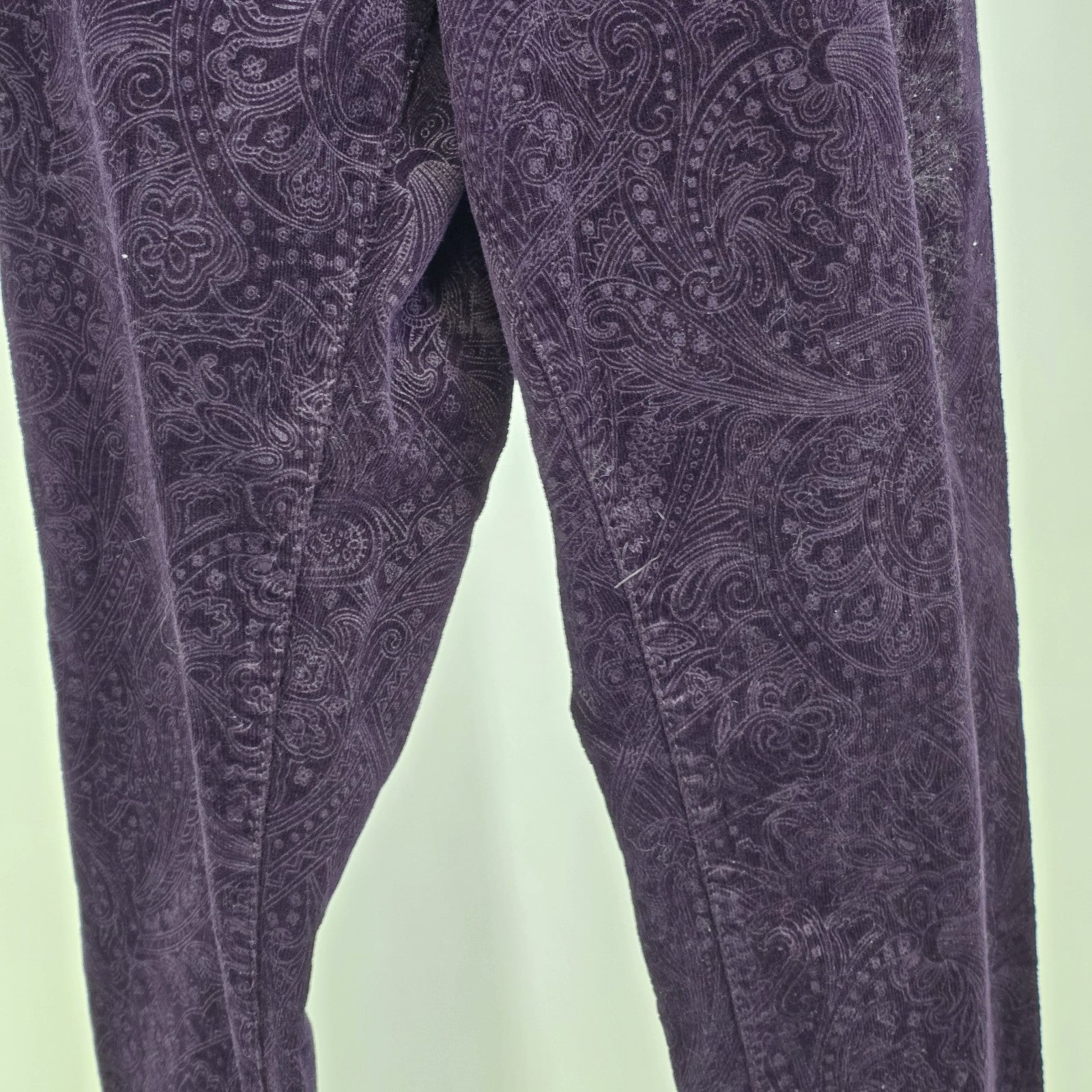 ELLE Dark Plum Purple Velvet Jeans Pants Paisley Boho Motif Low Rise Stretch 12R