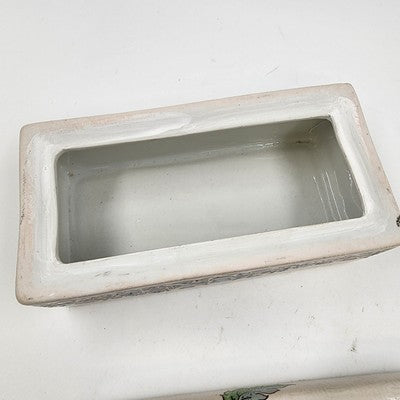 Embossed Ceramic Jewelry Box Macau Hand Painted Pink Blue Floral Design 8"x4"x4"