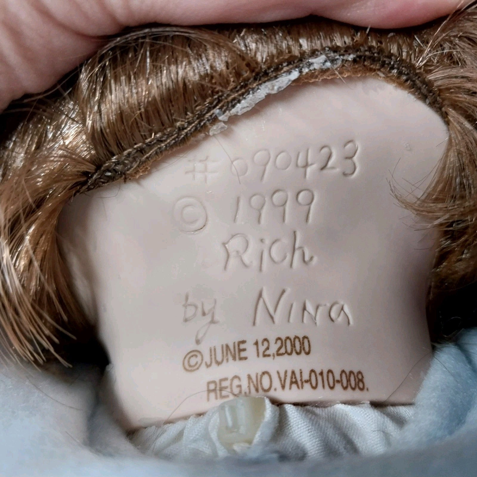 This Emerald Vinyl Originals Rich by Nina doll is a stunning 22-inch collectible featuring brown hair styled elegantly and dressed in an exclusive blue sailor suit. Crafted from durable plastic, this doll embodies classic charm and sophistication. Perfect for collectors or as a statement display piece, it adds timeless beauty to any doll collection.