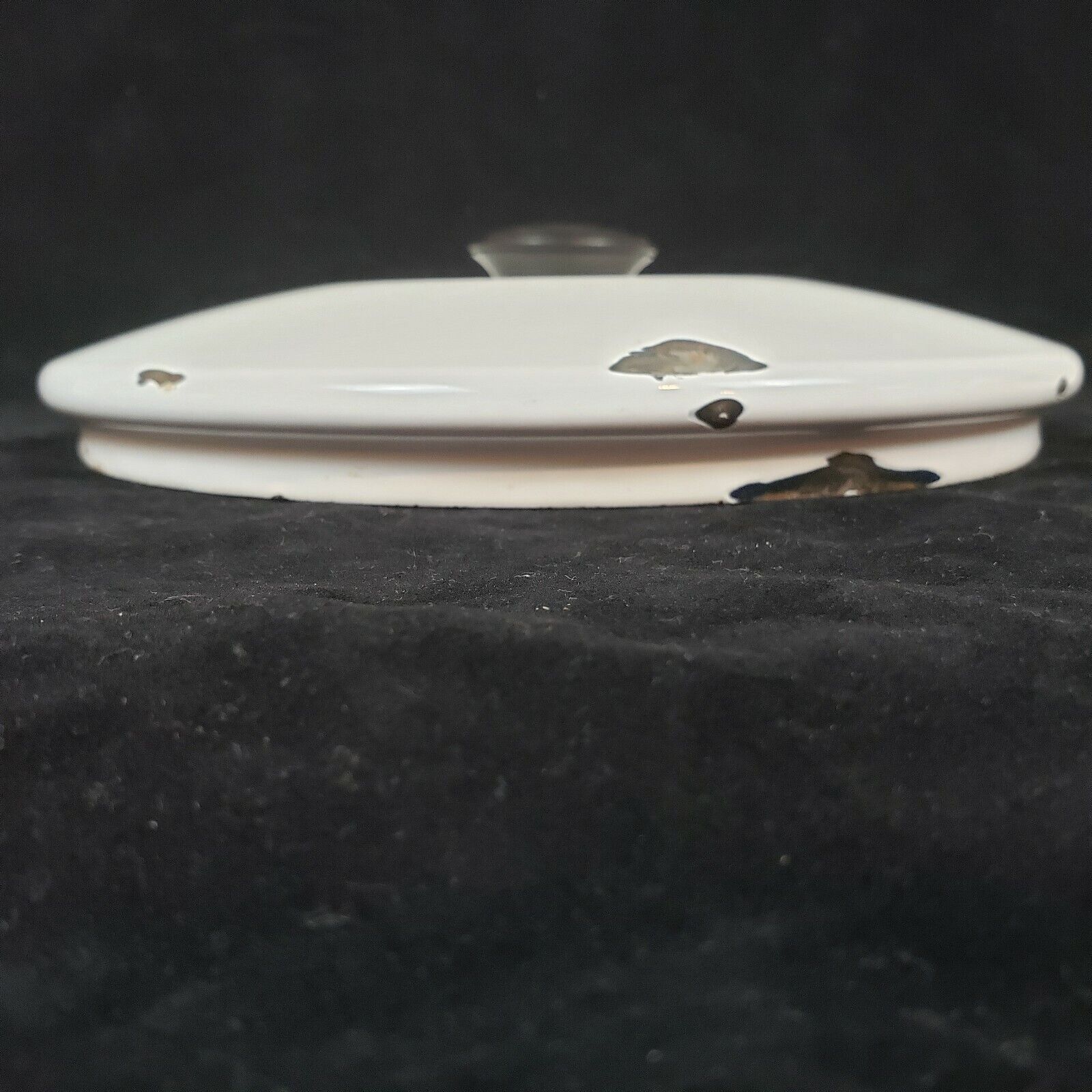 Fair Enamel Ware Pot Lid ONLY White Black Metal Knob Vintage Cover Round 8-5/8"