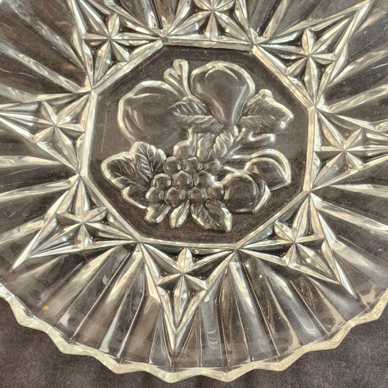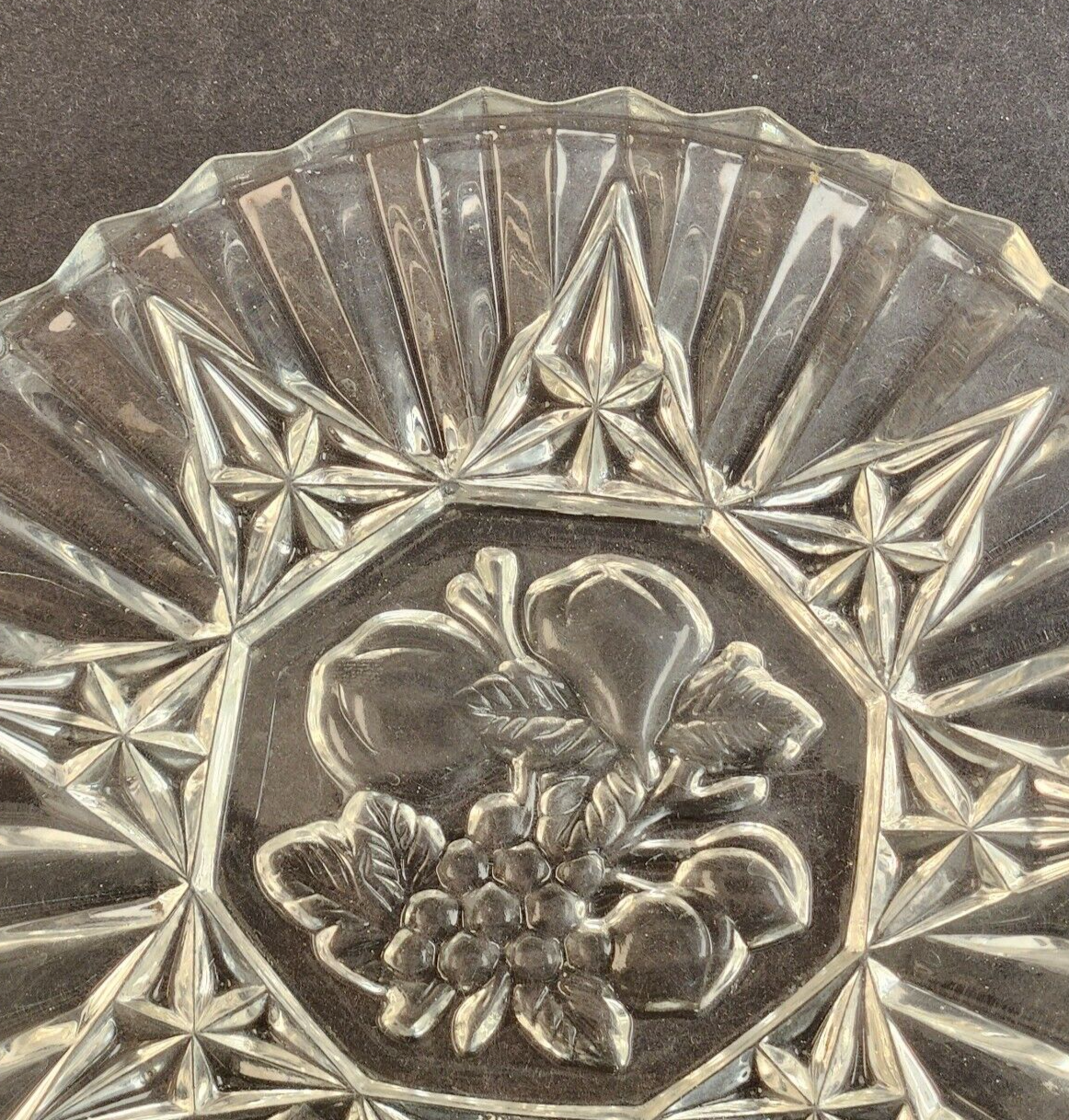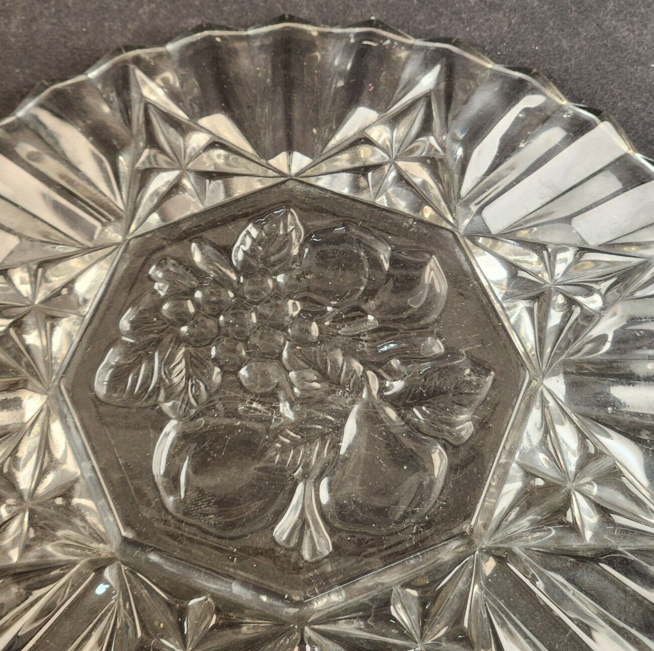 Federal Cut Glass Pioneer Pressed Fruits & Vegetable 8" Diam Dessert Salad Plate