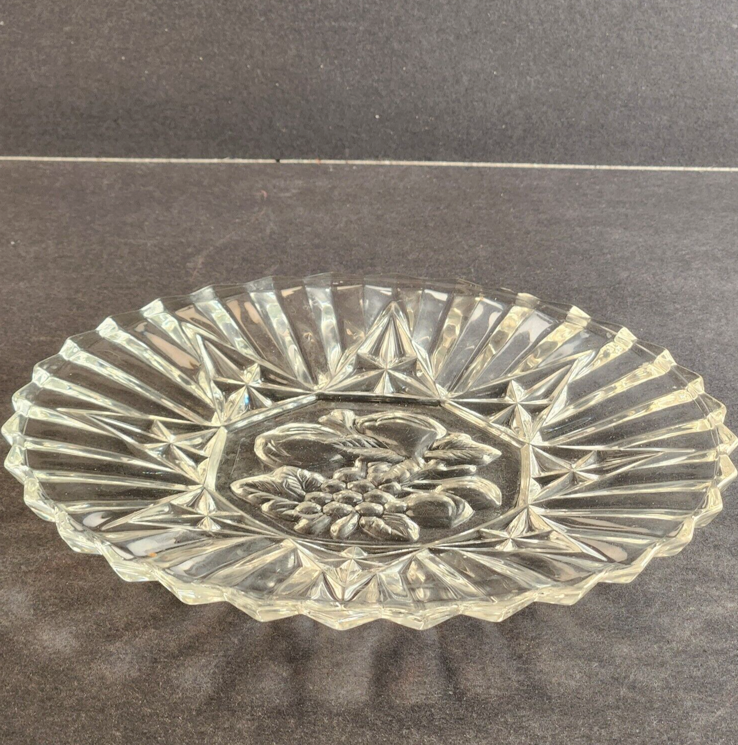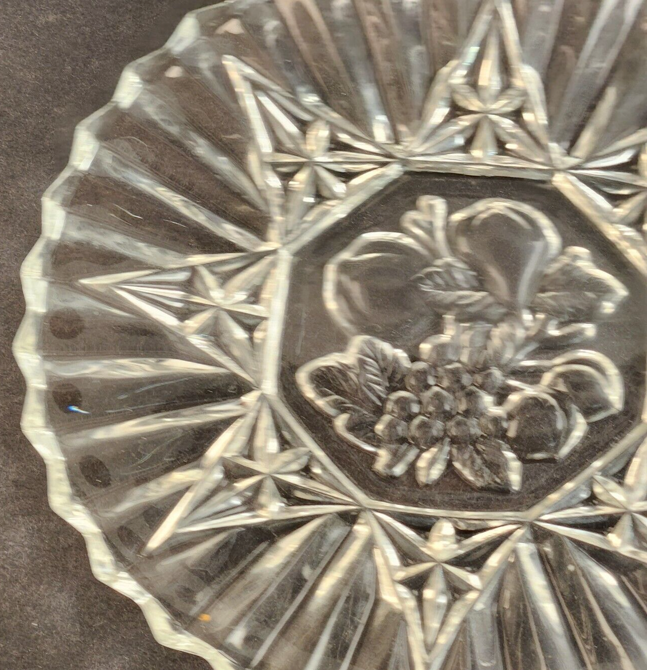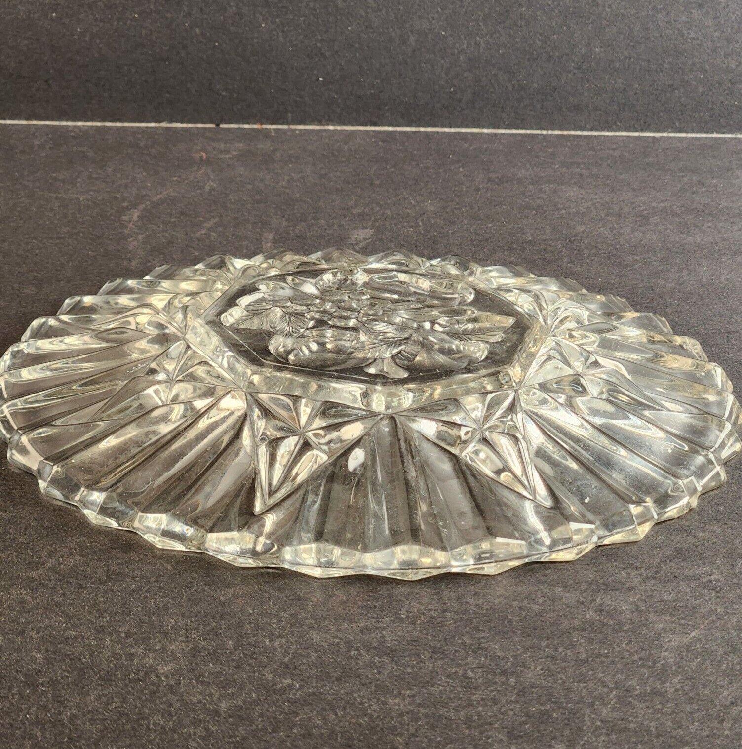 Federal Cut Glass Pioneer Pressed Fruits & Vegetable 8" Diam Dessert Salad Plate