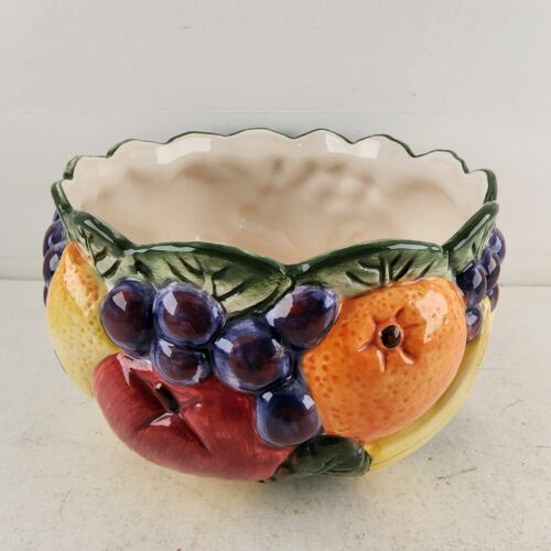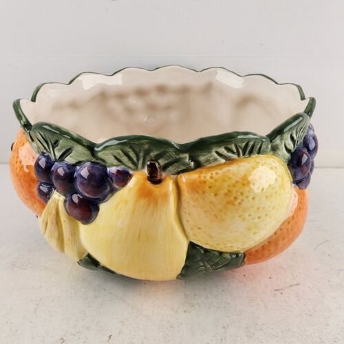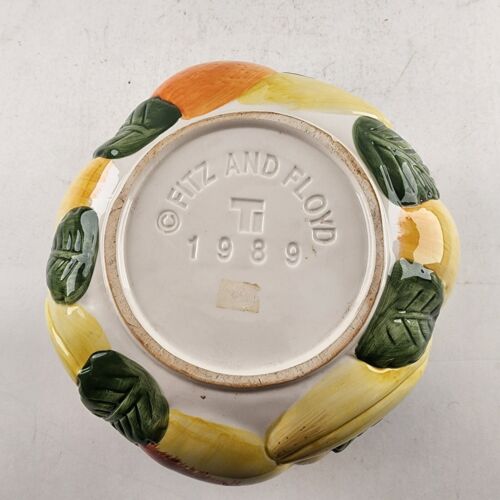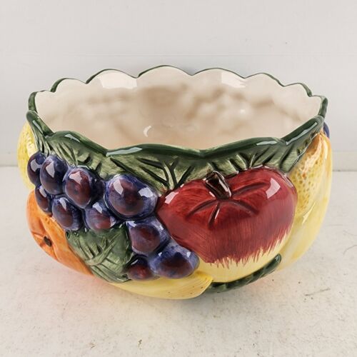 Fitz and Floyd Vintage 1989 Calypso Majolica Hand Painted Ceramic Fruit Bowl 7"
