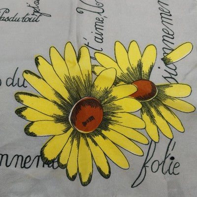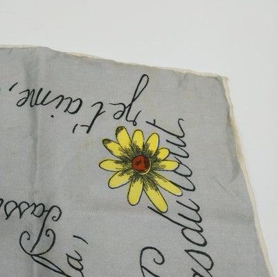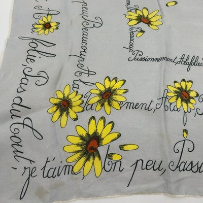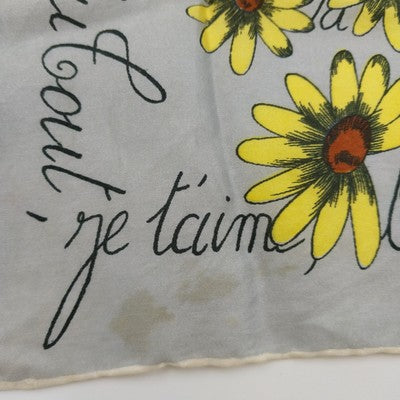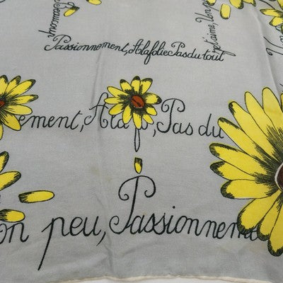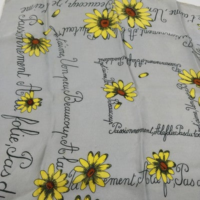 French Daisy Print Silk Scarf 17" Square Grey Yellow Brown Floral Design Vintage