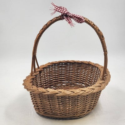 Charming French wicker woven gathering basket with a sturdy handle, perfect for picnics, storage, or farmhouse-style décor. Its natural woven texture and timeless design make it both practical and decorative, fitting beautifully into rustic, cottage, or country-inspired settings.
