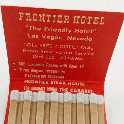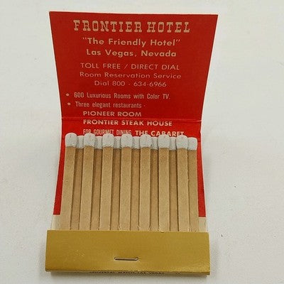 Own a piece of early Las Vegas history with this vintage Frontier Hotel & Casino matchbook from the 1940s. Known as "The Friendly Hotel", the Frontier was one of the iconic early Strip casinos, making this matchbook a desirable collectible for Vegas and advertising enthusiasts.