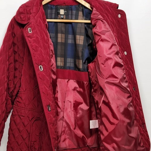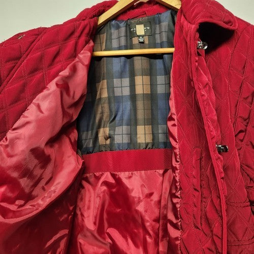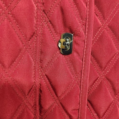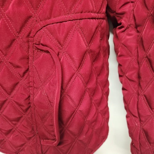 Stylish and functional, this Gallery Women's quilted jacket is perfect for cool-weather layering. The vibrant red color, eyelet closure, and side pockets combine fashion with everyday practicality. Designed with a flattering long sleeve cut and quality stitching throughout.