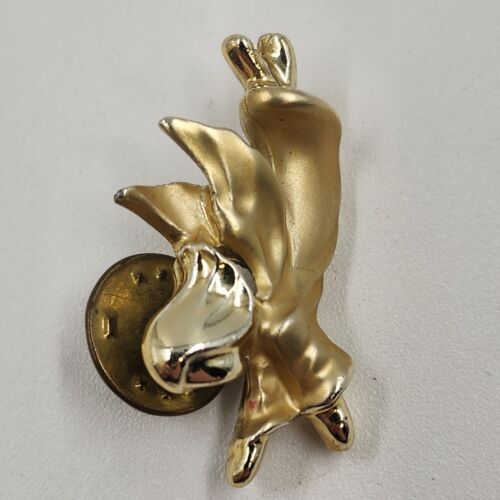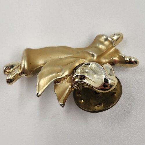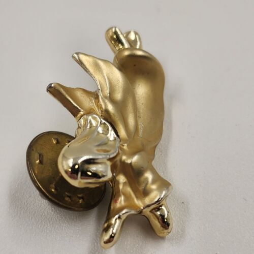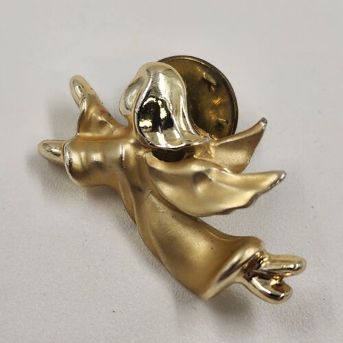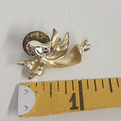 Gigio Giusti Flying Guardian Angel Lapel Pin Satin & Shiny Gold Tone Religious