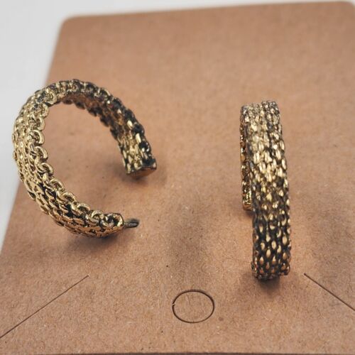 Two pair of gold-tone hoop earrings. One pair is a rope chain approximately 1 inch in diameter.
