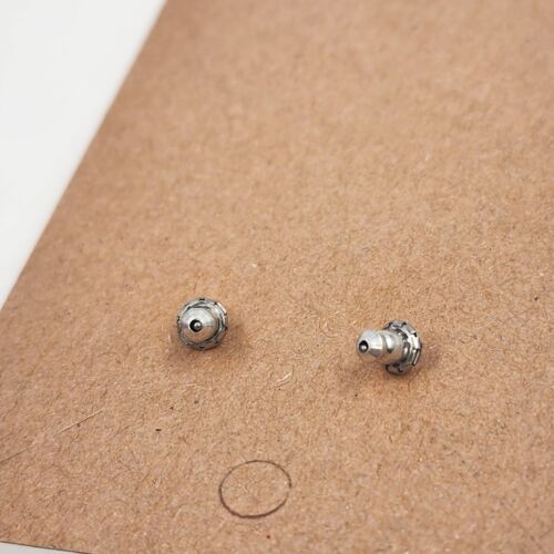 The other pair is shiny gold tone and approximately 5/8 inch in diameter.