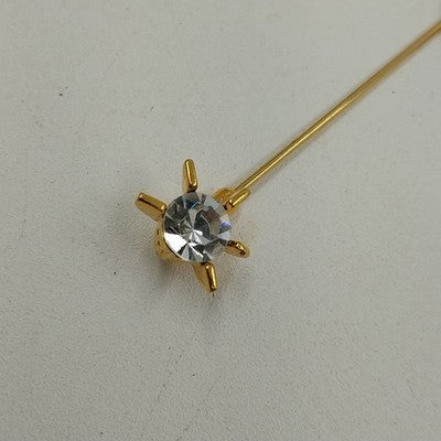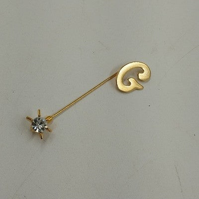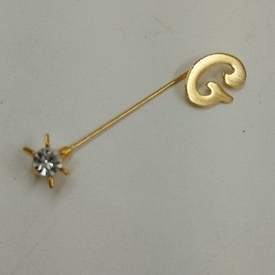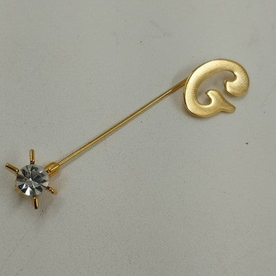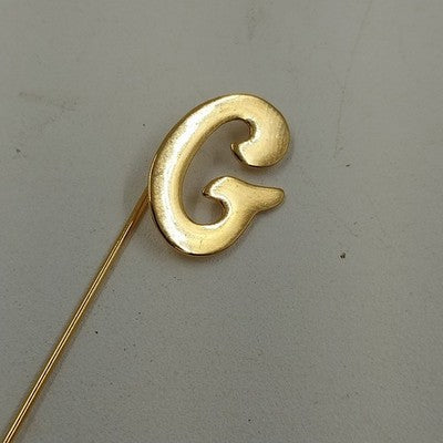 Add a touch of vintage charm with this elegant gold-tone stick pin featuring the initial "G" adorned with a faceted clear rhinestone. The classic trombone clasp closure ensures secure wear, perfect for lapels, hats, or scarves.