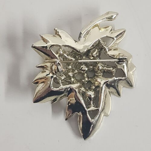 Fifteen stones are set in the inner leaf, seven smaller rhinestones and 8 larger rhinestones.