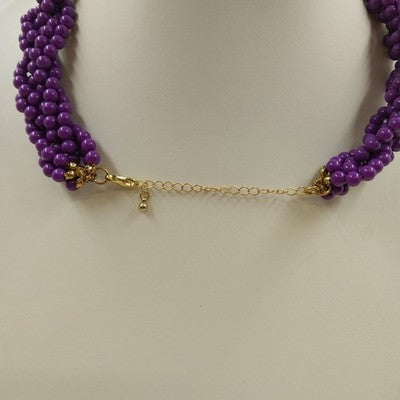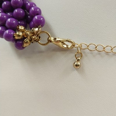 Gold Tone Purple Round Beads Twisted Braided Multi Strands 10" Necklace Jewelry