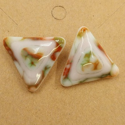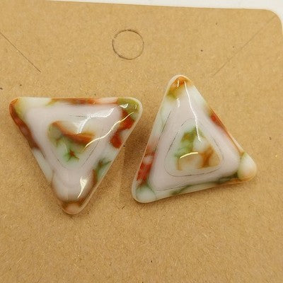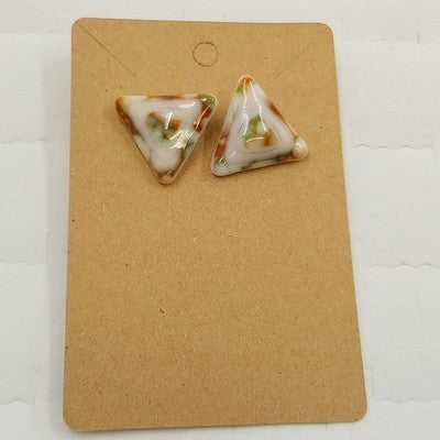Gold Tone with White Polished Thomsonite Multicolor Marbled Triangle Earrings