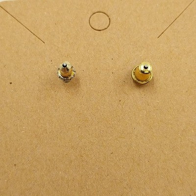These elegant triangle-shaped pierced earrings feature polished Thomsonite stones in a marbled blend of multicolor tones, set in a sleek gold tone finish. Unique and stylish, they add a subtle pop of color and sophistication to any outfit.