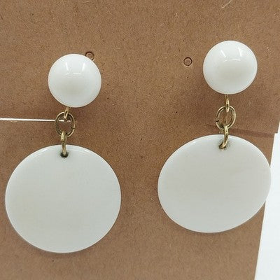 Add a pop of vintage charm with these white plastic dangle/drop clip-on earrings, featuring a small ball top and a 7/8-inch round disc that swings with retro flair. Lightweight and easy to wear, they're a perfect accent for everyday or themed looks.