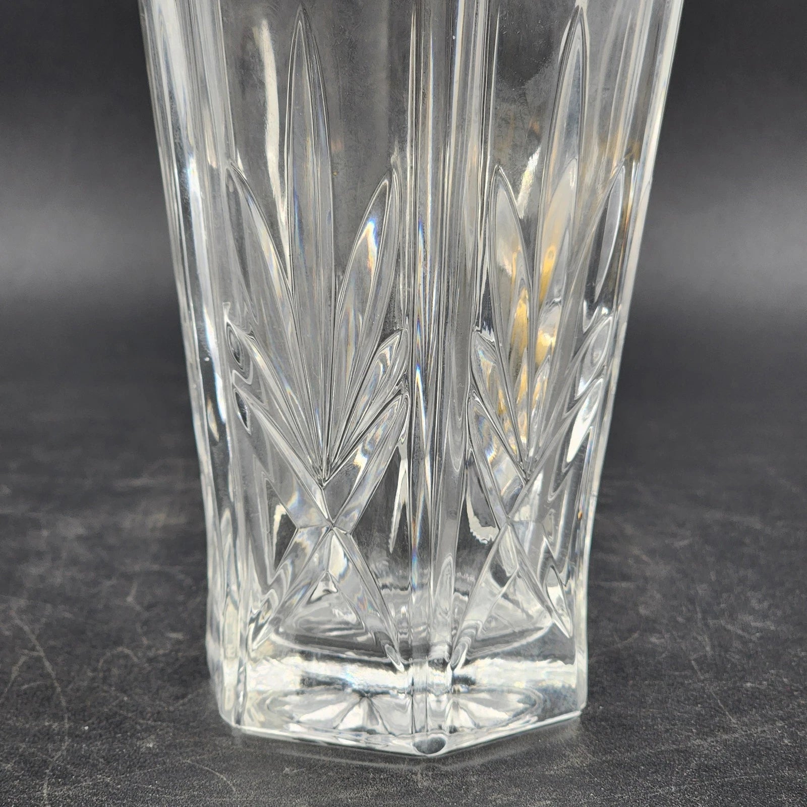 This elegant vintage Gorham Avon lead crystal vase adds timeless sparkle to any home décor. Crafted in 1987, this beautiful 6-sided vase features an intricate cut crystal design with a wide mouth, perfect for displaying floral arrangements or as a standalone statement piece.