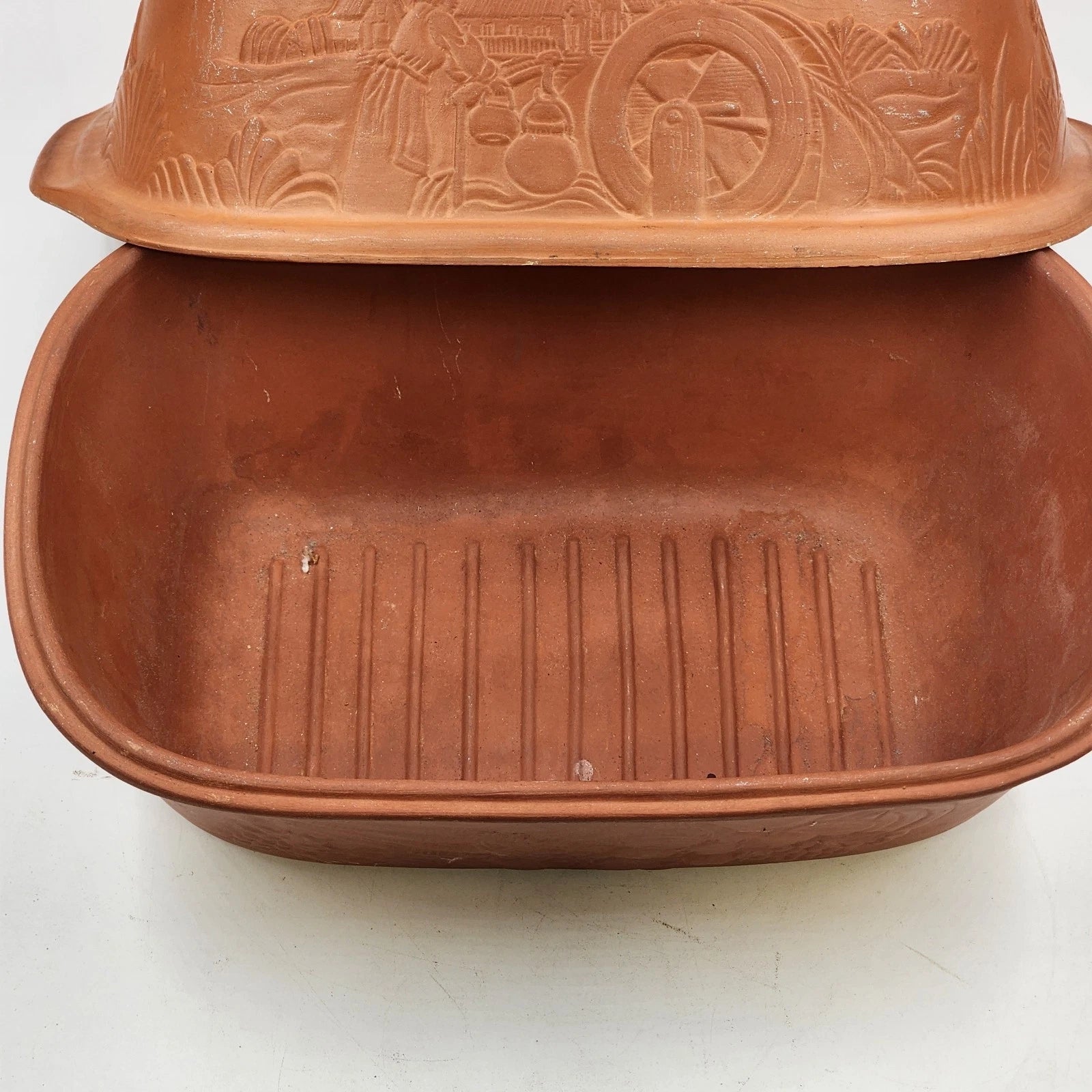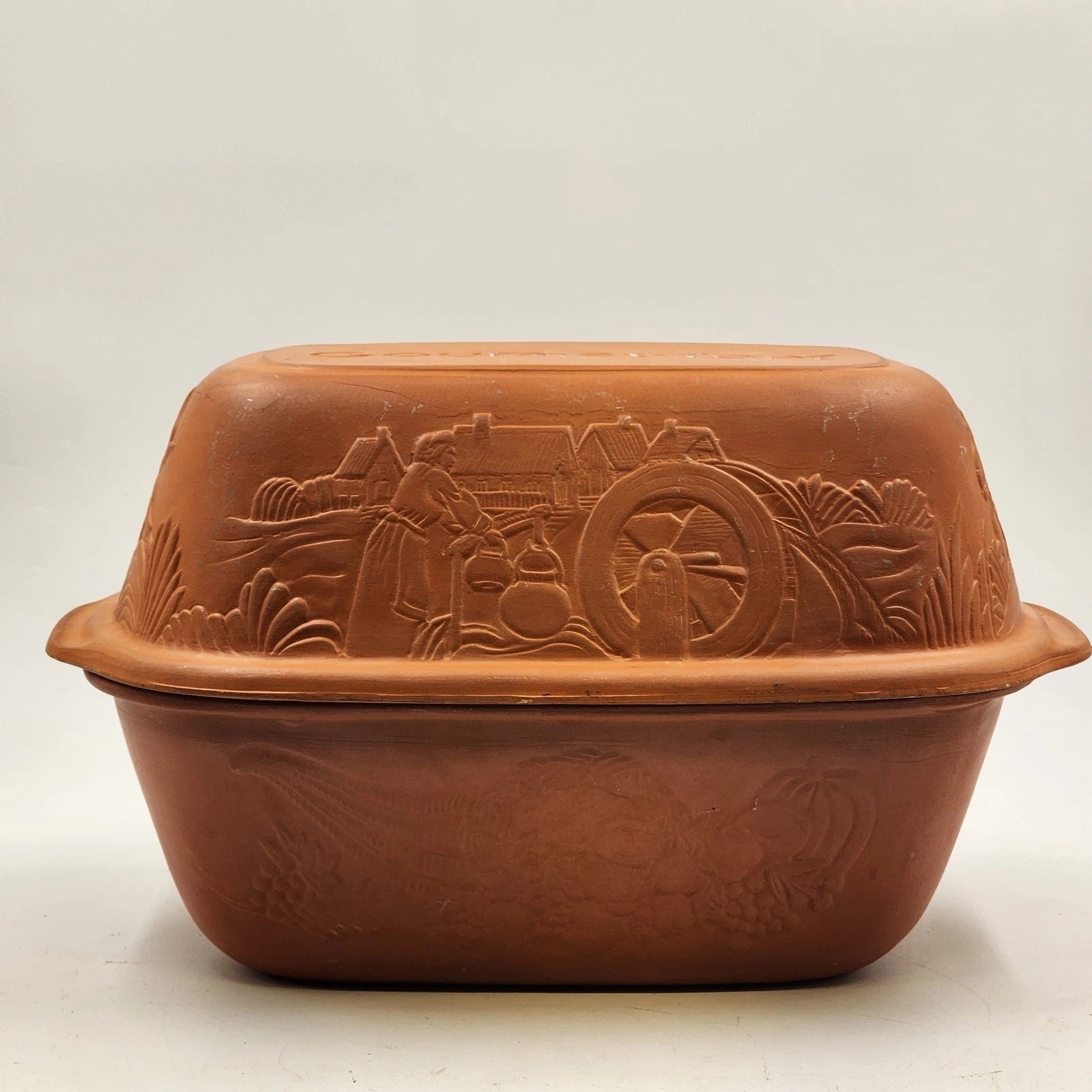 Gourmet Topf Terra Cotta Clay Roaster XL Dutch Oven Baker 15"x10" USA 1979 Vtg