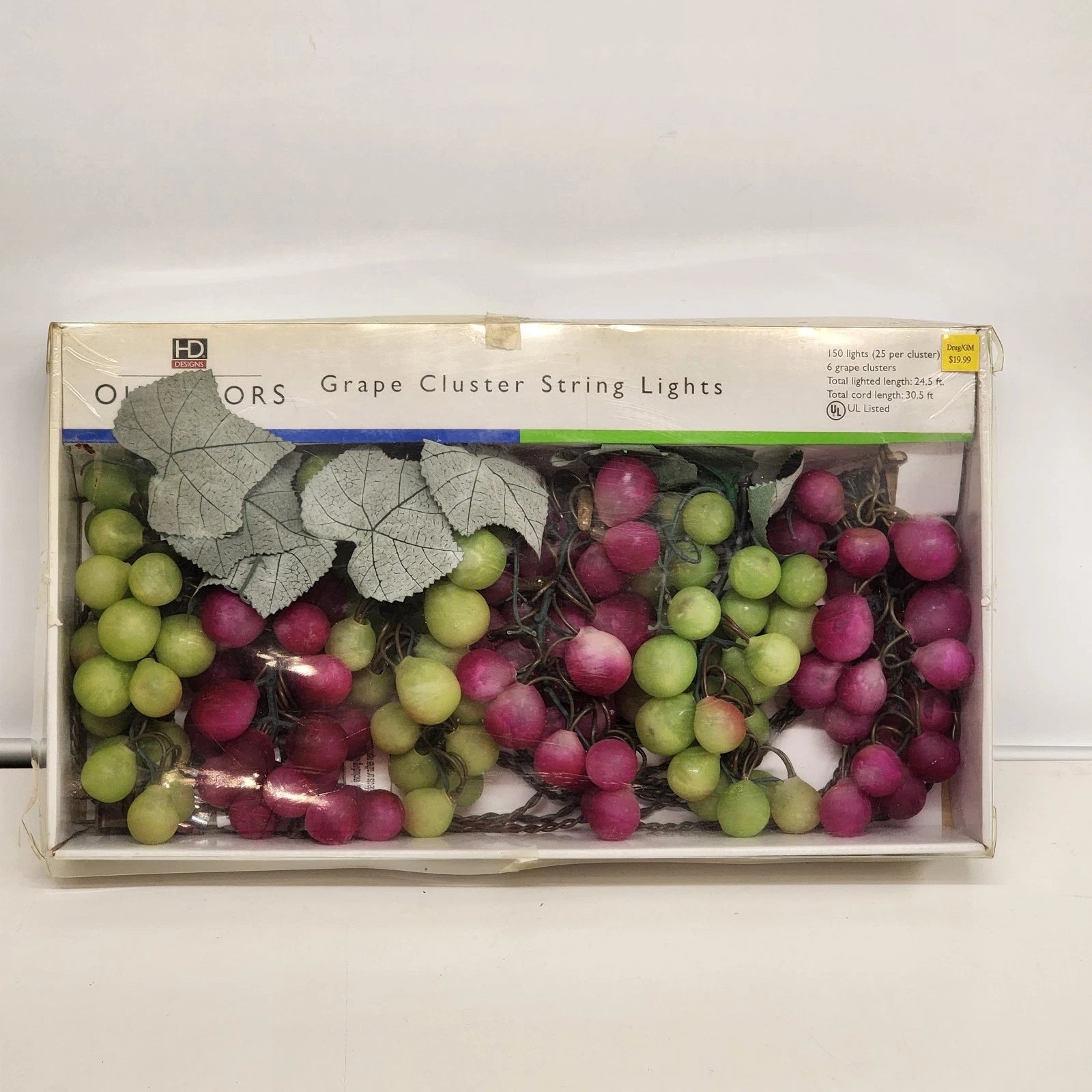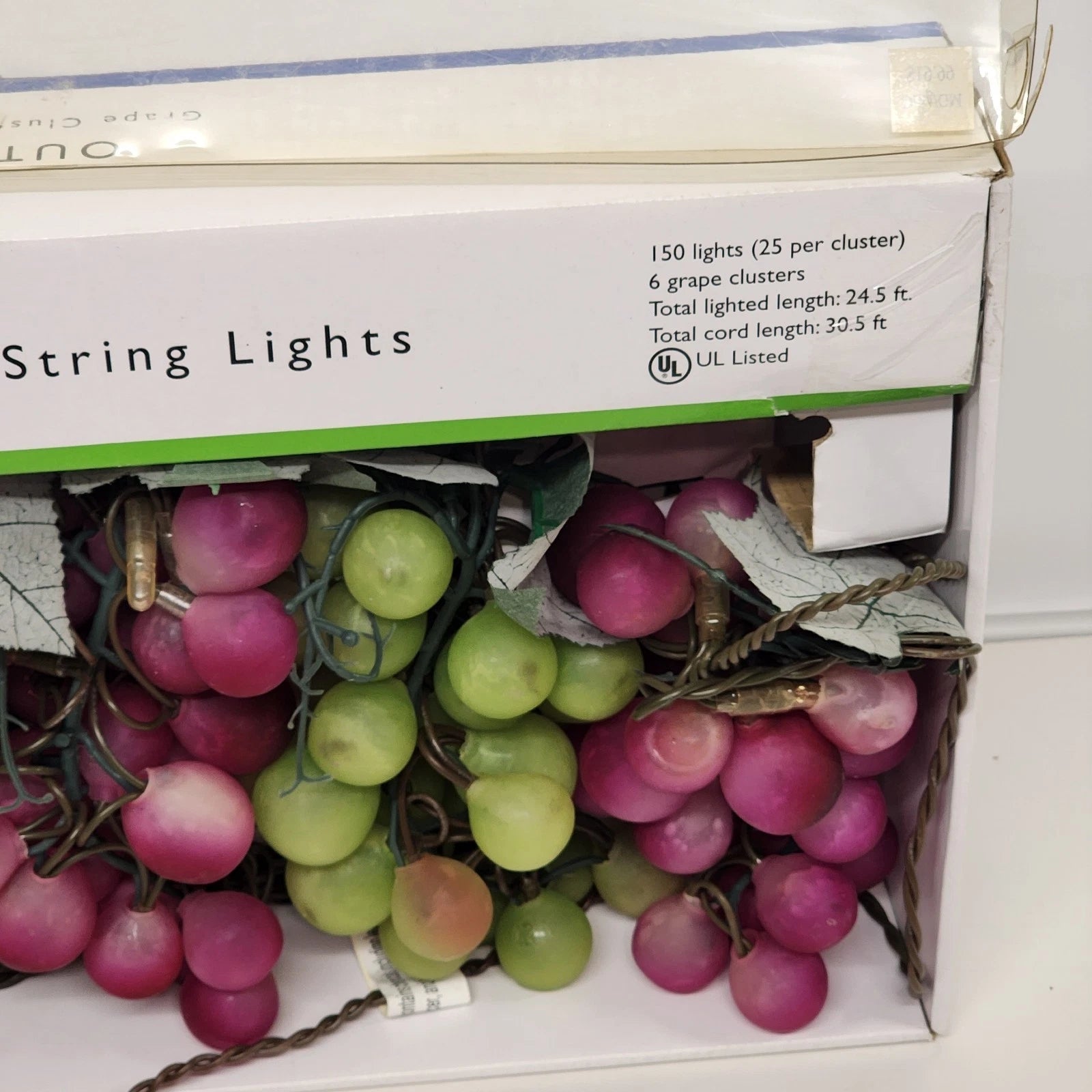 Grape Cluster String Light Set 6 Clusters 150 Lights Red Green New NOS Vintage