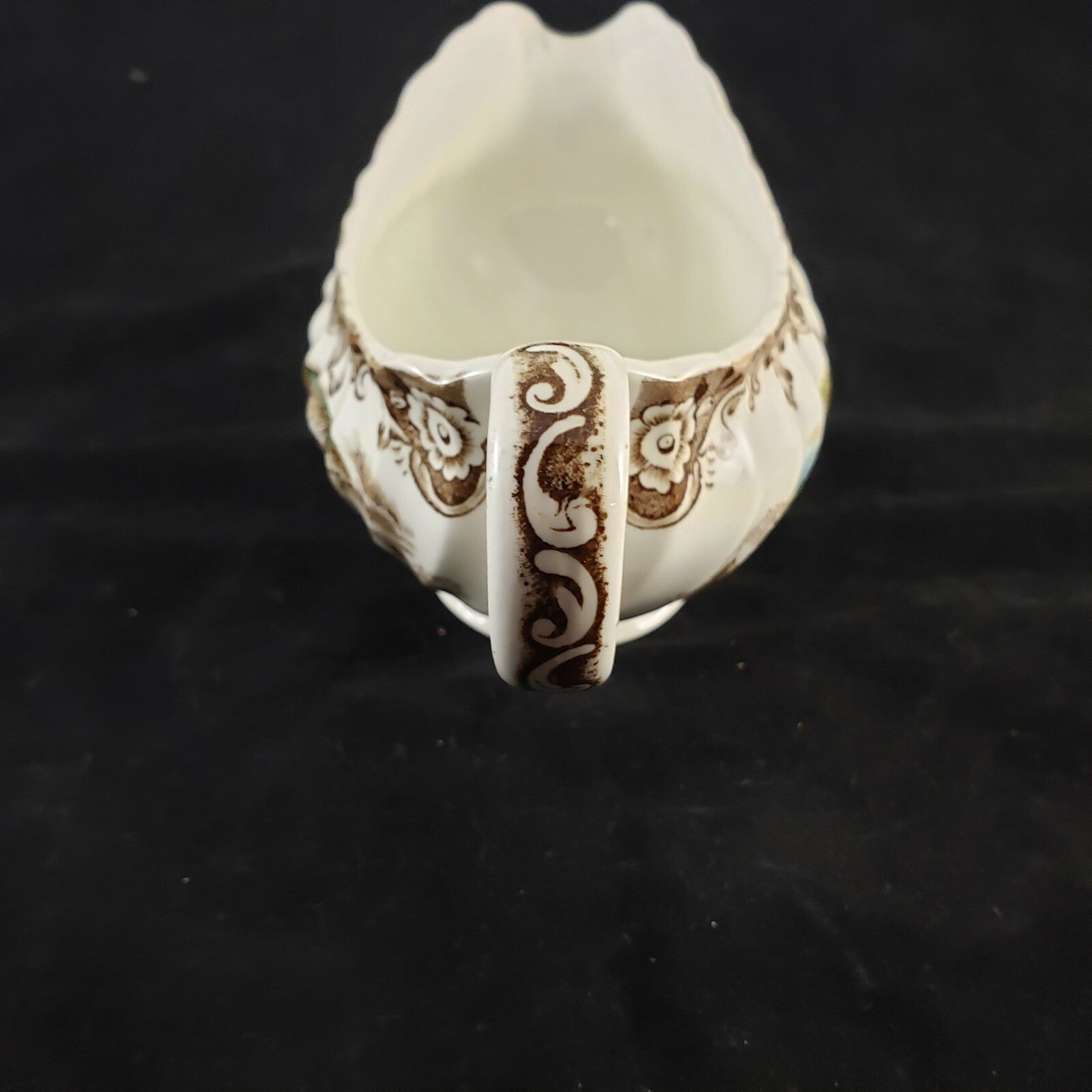 Classic gravy boat from the Johnson Brothers Heritage Hall collection, featuring the Southern Plantation design. This piece is in excellent condition and ready to complement your table or collection.