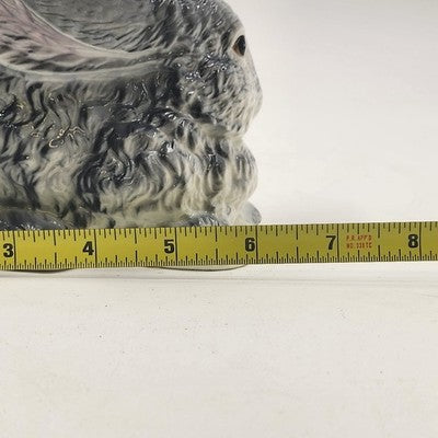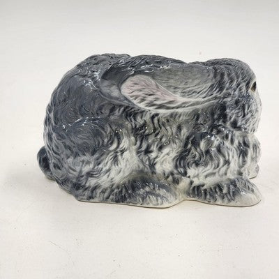 Gray Rabbit Bunny White Face Ears Laid Back Figurine 6.25"x4" Bone China Taiwan
