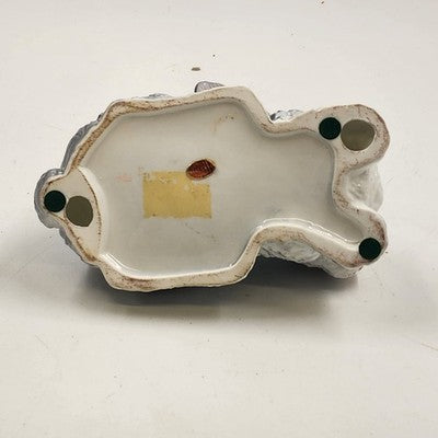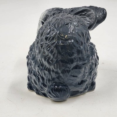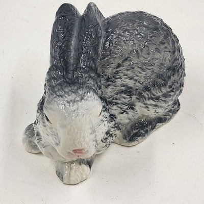 Charming and delicately crafted, this gray bone china rabbit figurine features a relaxed, laid-back pose with a sweet white face and ears. A lovely addition to any bunny collector's shelf or Easter décor.