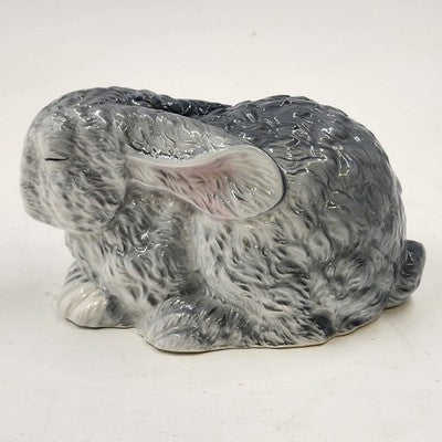 Gray Rabbit Figurine Bone China Bunny White Face Eyes Closed Taiwan 6.5" Long