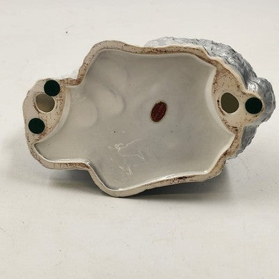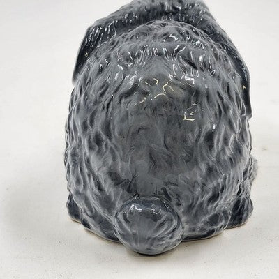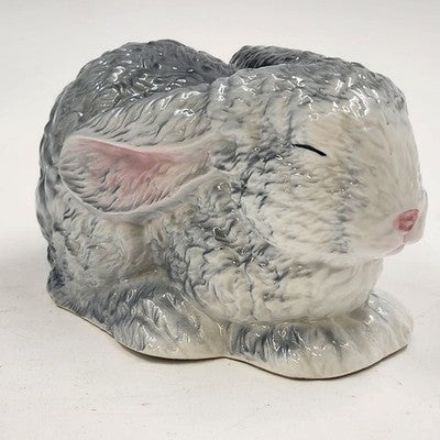 Charming vintage bone china rabbit figurine featuring a gray body, white face, and closed eyes in a relaxed, peaceful pose. Made in Taiwan.