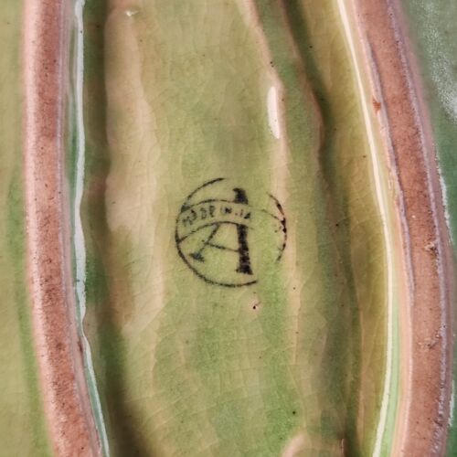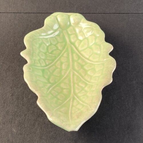 Green Leaf Trinket Nut or Candy Dish 9" Long by 4.5" Wide Crazed Made in Japan