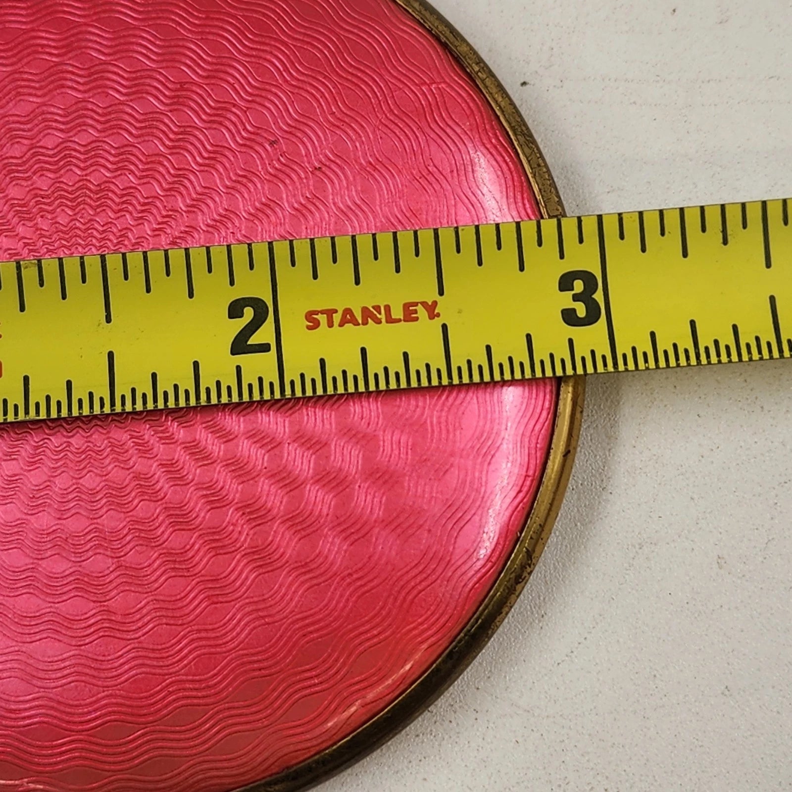 Guilloche Enamel Compact Hot Pink Red Mirror Brass Rim West Germany