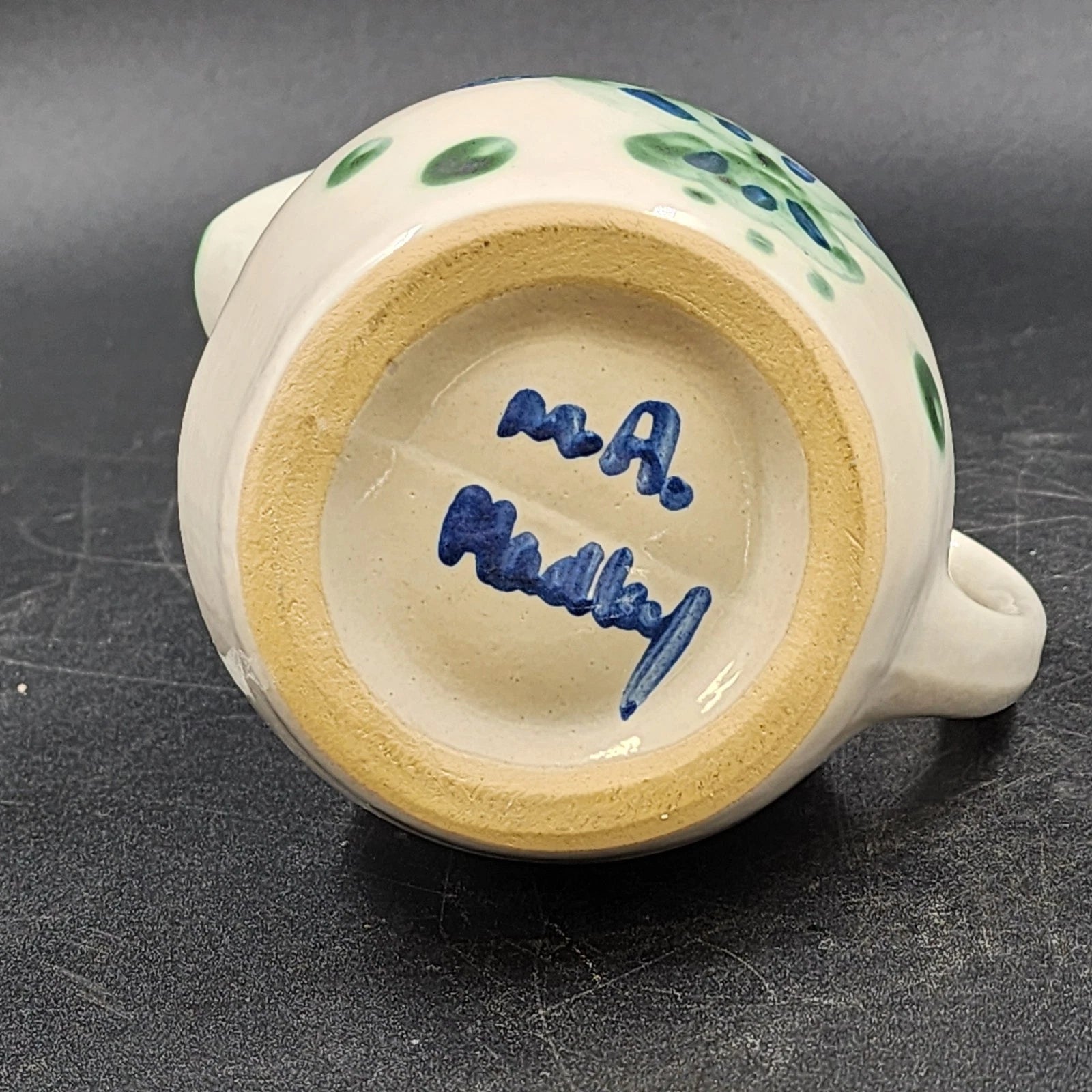 Add a charming touch to your kitchen or collection with this vintage M.A. Hadley Pottery pitcher featuring the beloved Blueberry Bouquet hand-painted design. Known for its durable stoneware and folk-art style, M.A. Hadley pottery pieces are handmade and highly collectible.
