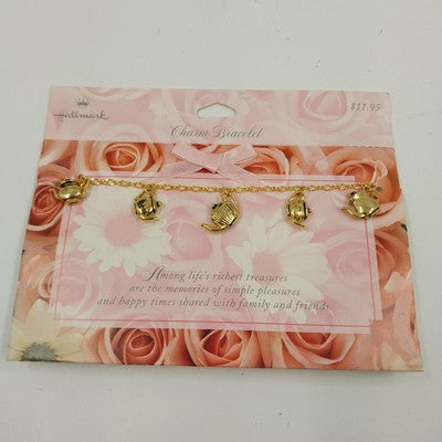 Add a charming touch to your jewelry collection with this Hallmark gold tone teapot charm bracelet. Featuring a delicate dangle teapot charm and a secure toggle clasp, this 7" bracelet is perfect for everyday wear or as a thoughtful gift.