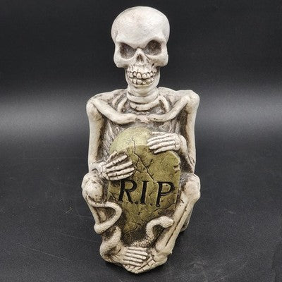 Halloween Resin Molded RIP Skeleton Grave Stone Serpent 13.5" Yard Decoration