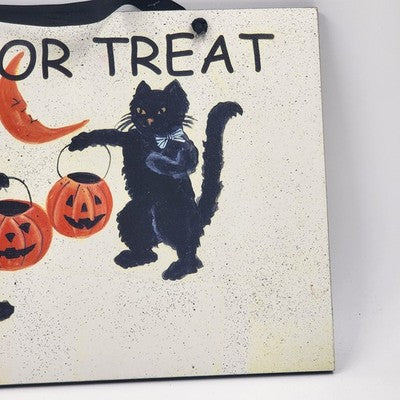 Halloween Sign Two Black Cats Trick or Treat Pumpkin Buckets 10.5"x16" Decor