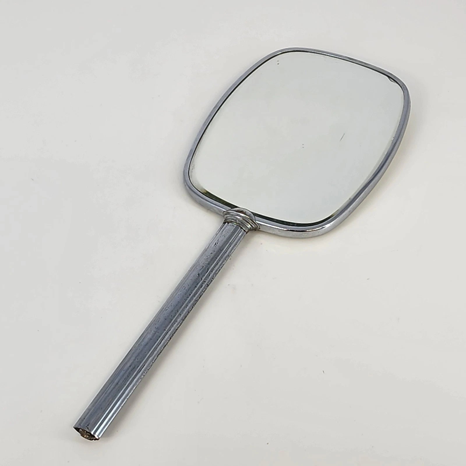 Hand Mirror 12.5" Silver & Yellow Beveled Glass Cameo Rose Flower Vanity Decor