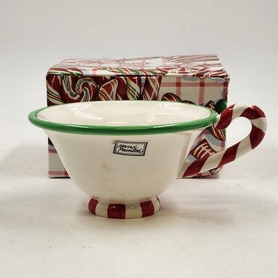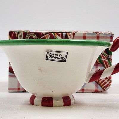 Hand Painted Tea Cup Department 56 Red Green Peppermint Mug China w Box