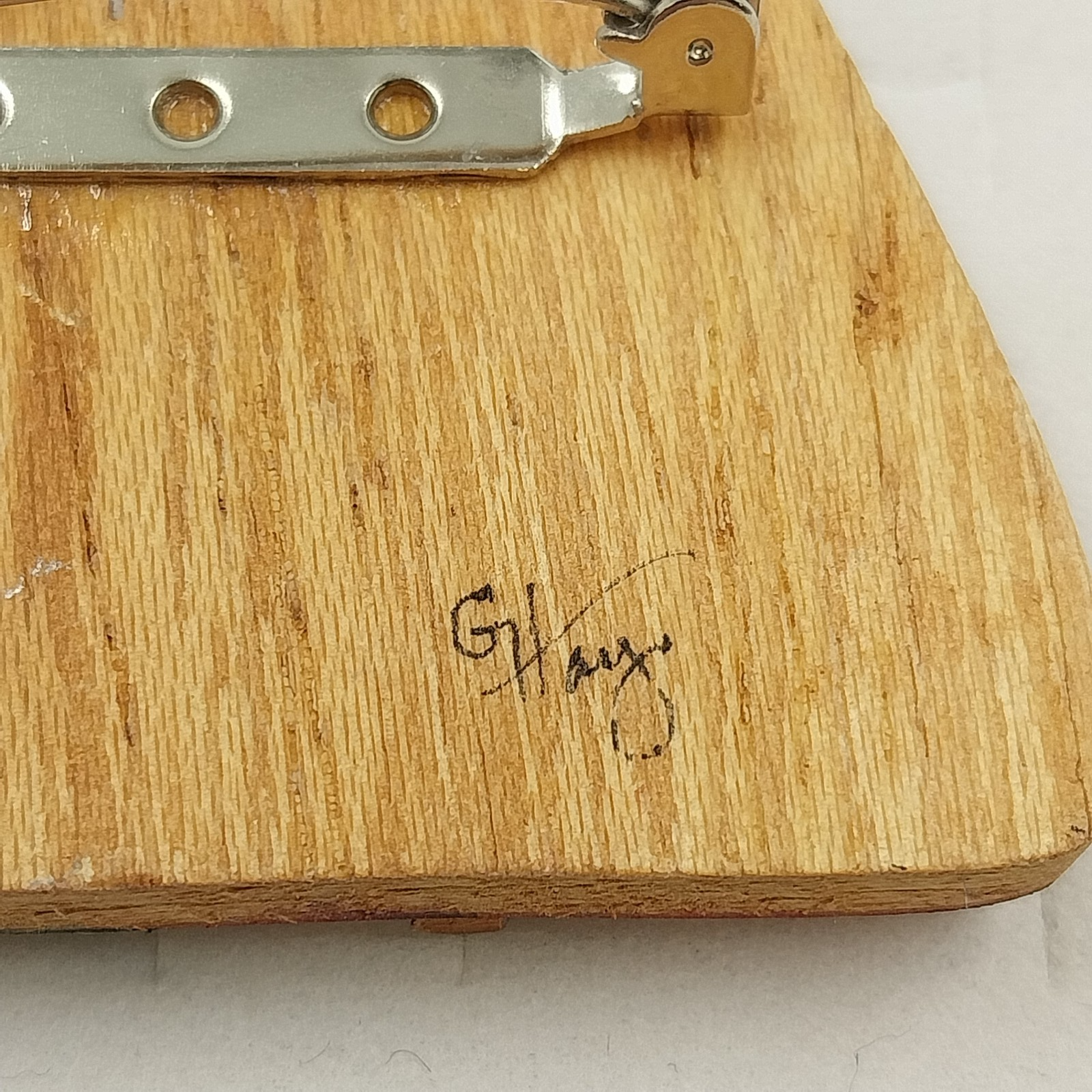 Hand Painted Wood Holy Family Manger Nativity Scene Brooch Pin 2" G.Hays Signed