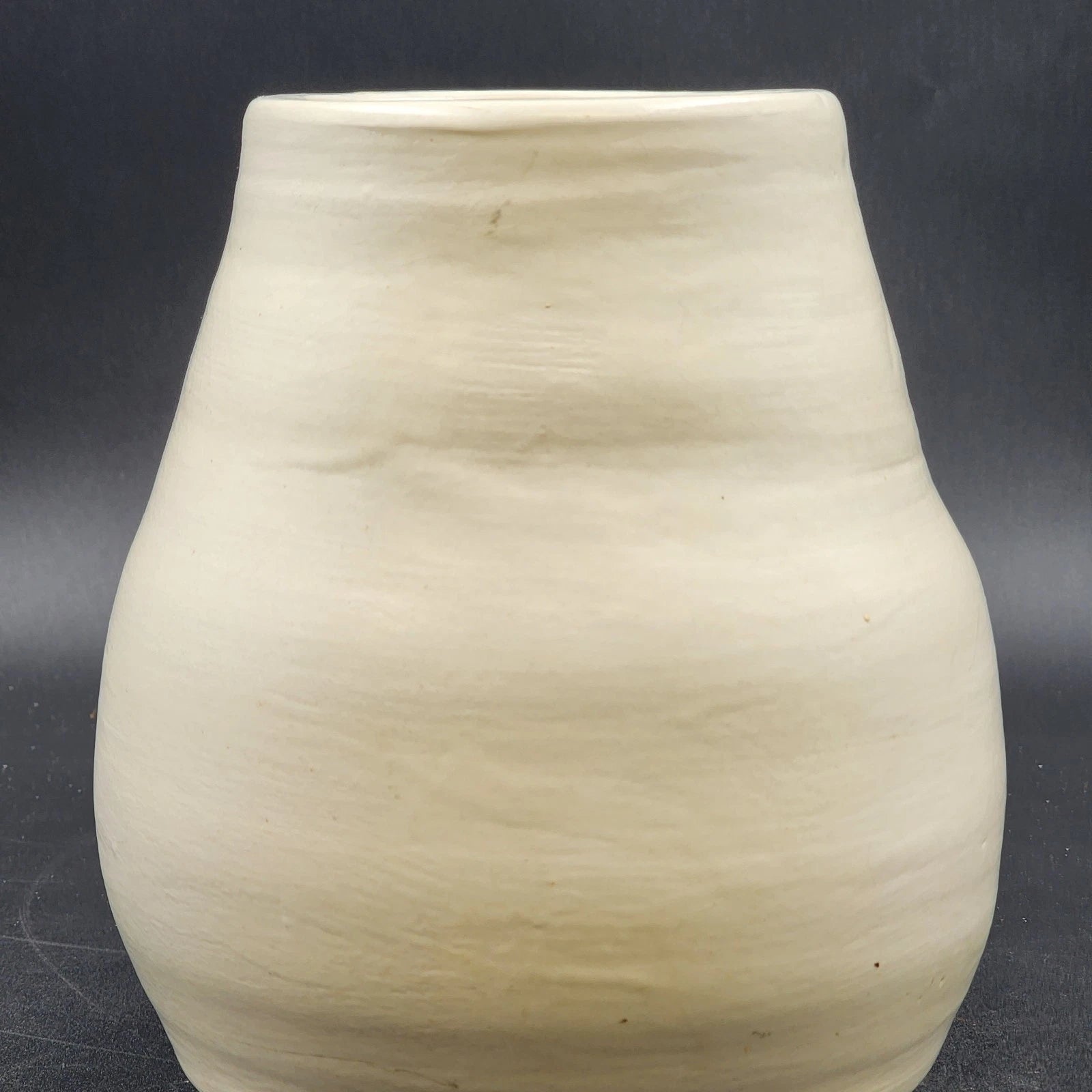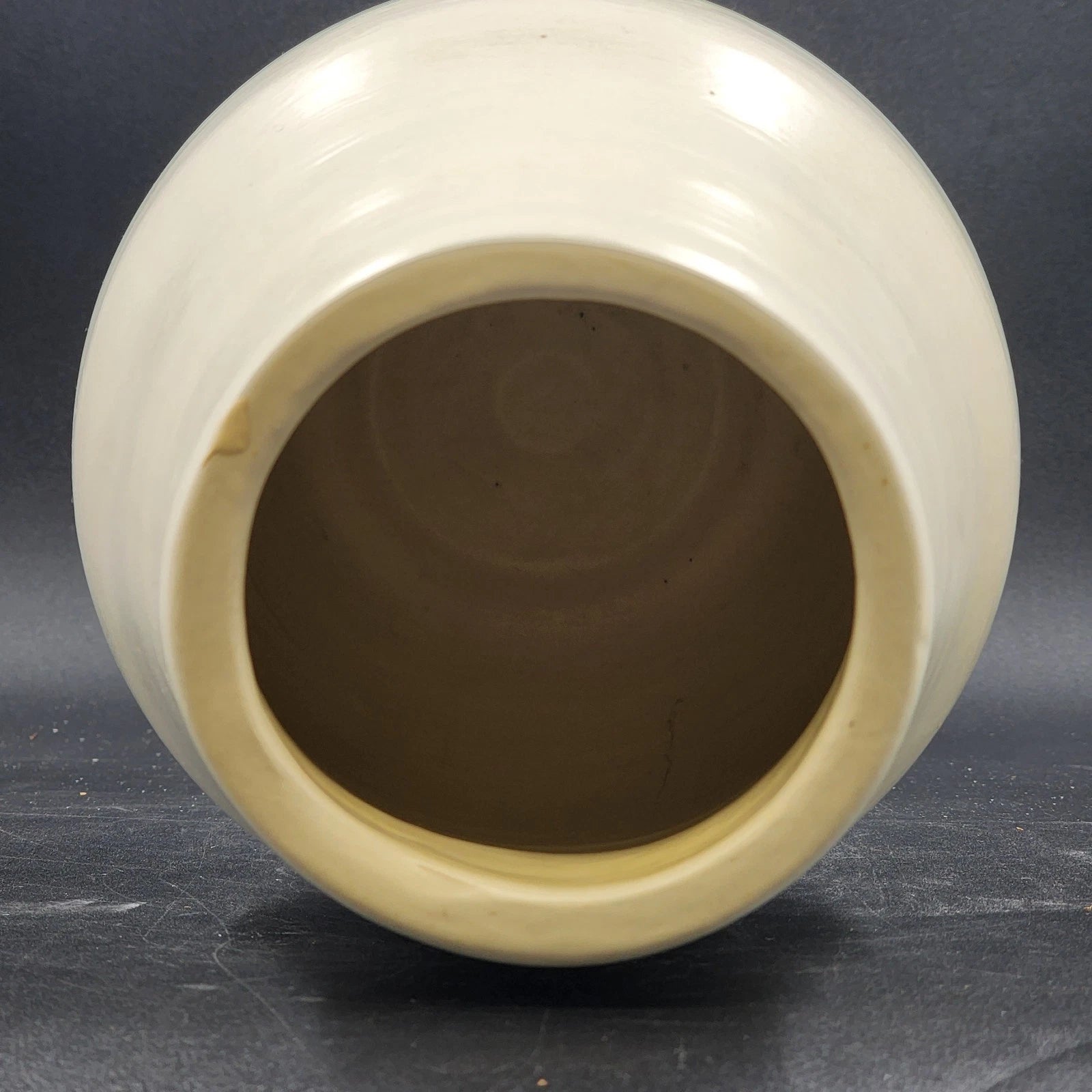 Handmade Pottery Vase White Beige Glazed Ceramic Footed Wide Body Rustic 8" Vtg