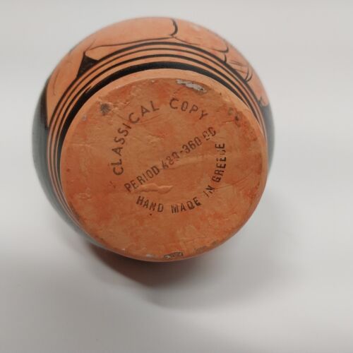 This handmade red figure Greek pottery pitcher is a stunning vintage reproduction of a classic period piece from 430-360 BC. Crafted with exquisite attention to detail, this pitcher is made of high-quality pottery material and features a beautiful black color that will complement any decor. Measuring at 5 inches in height, this unit is a perfect addition to any collection and is sure to impress any collector. The style of this pitcher is Greek, and it comes from a country/region of origin in Greece. The material is also pottery, and it is a unit quantity of 1. This piece is post-1940 in age and falls under the categories of Other Decorative Collectibles, Decorative Collectibles, and Collectibles.