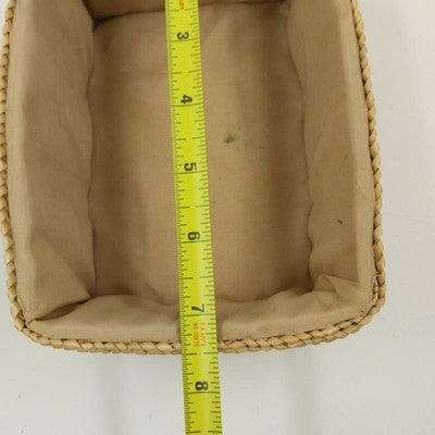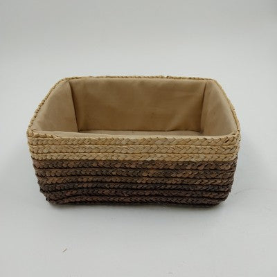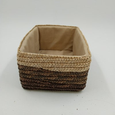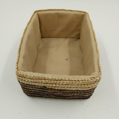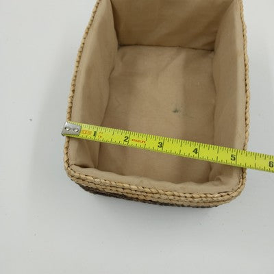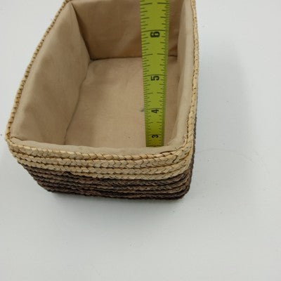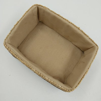 Handwoven Rattan Storage Basket 2-Tone w/ Liner Rectangular 7"