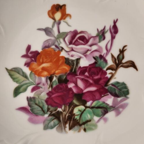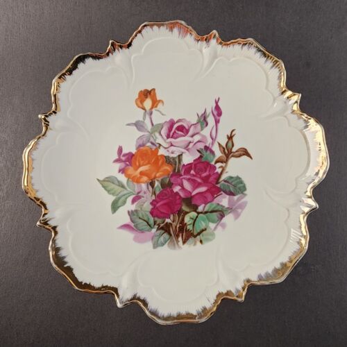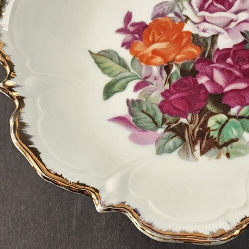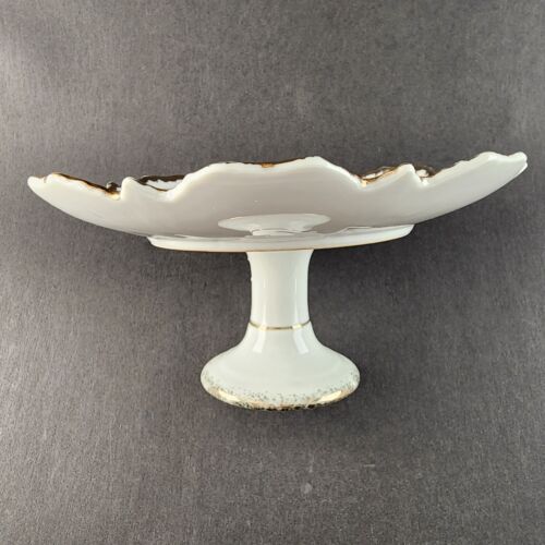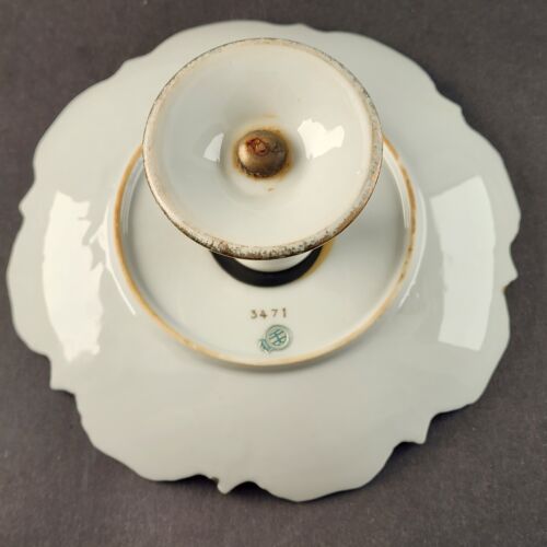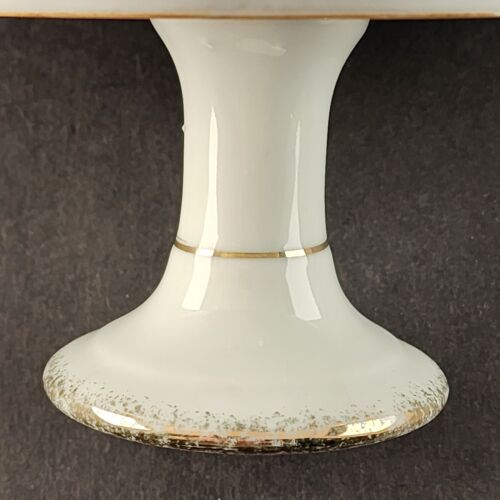 HB Japan White Porcelain Pedestal Dish Compote Hand Painted Roses Gold Trim 3471