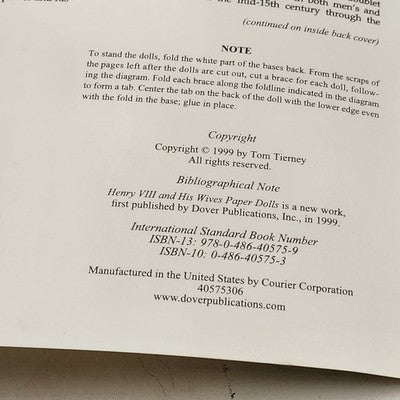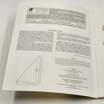 Step back into Tudor history with this original 1999 Tom Tierney paper doll book featuring Henry VIII and his six wives. Known for his historical accuracy and artistic detail, Tierney brings the royal court to life through beautifully illustrated, uncut paper dolls. A perfect collector's item for paper doll enthusiasts, history buffs, or vintage book lovers.